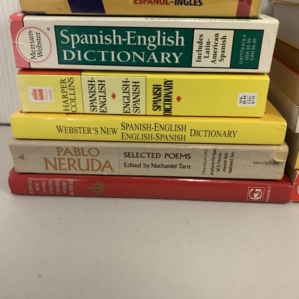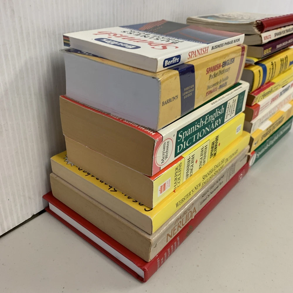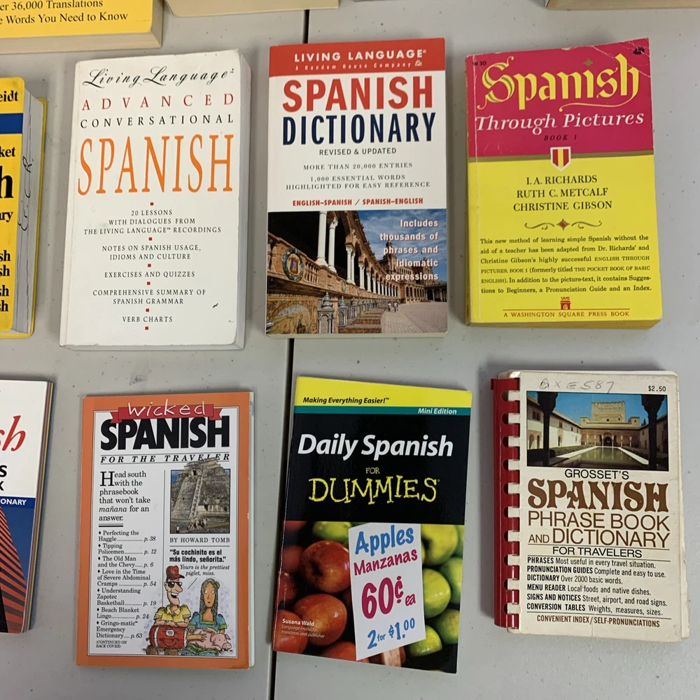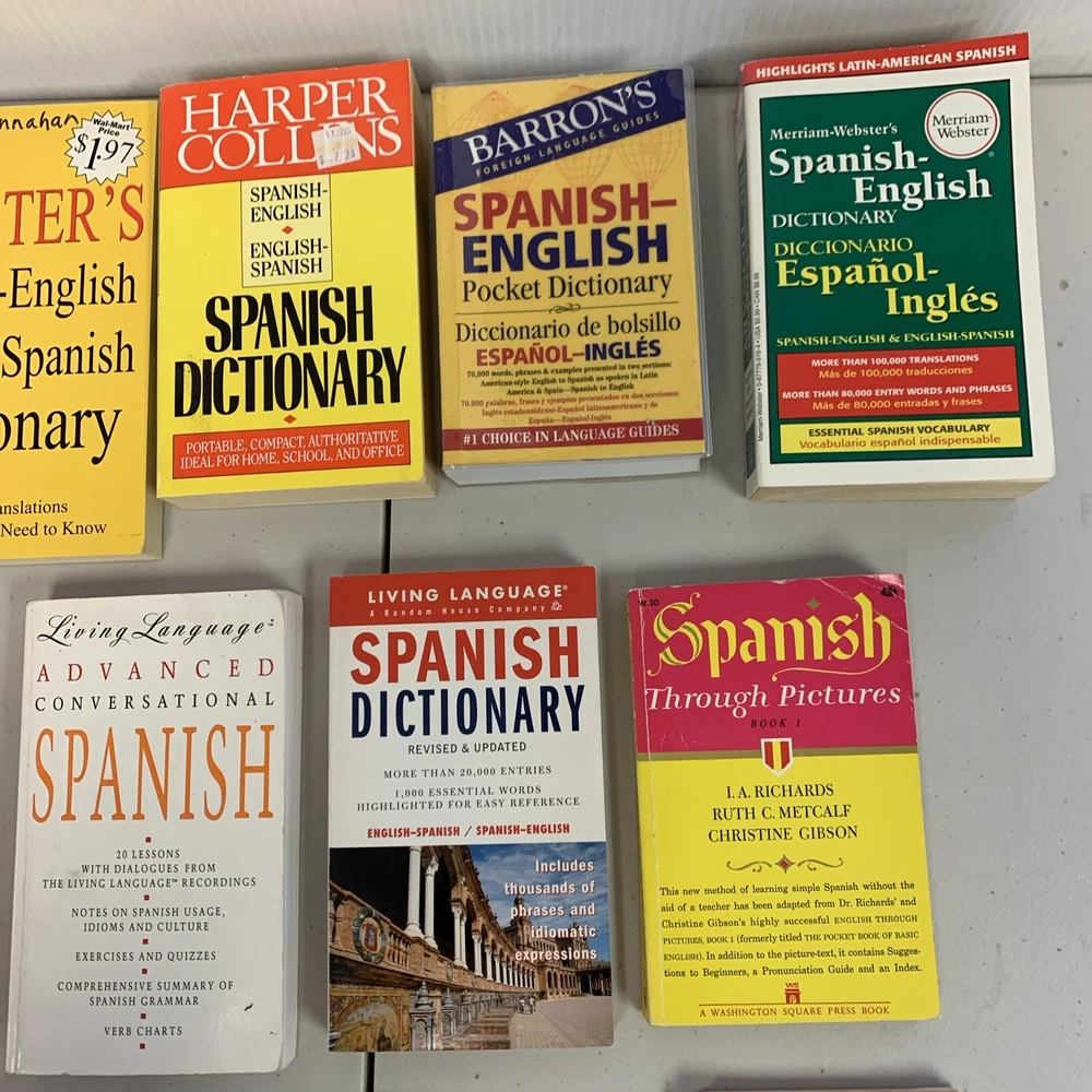 This lot includes 18 Spanish study books, dictionaries, and phrasebooks, perfect for anyone looking to improve their language skills. With a variety of formats, including paperback, these books cover a range of topics from travel to reference materials. May contain duplicates.