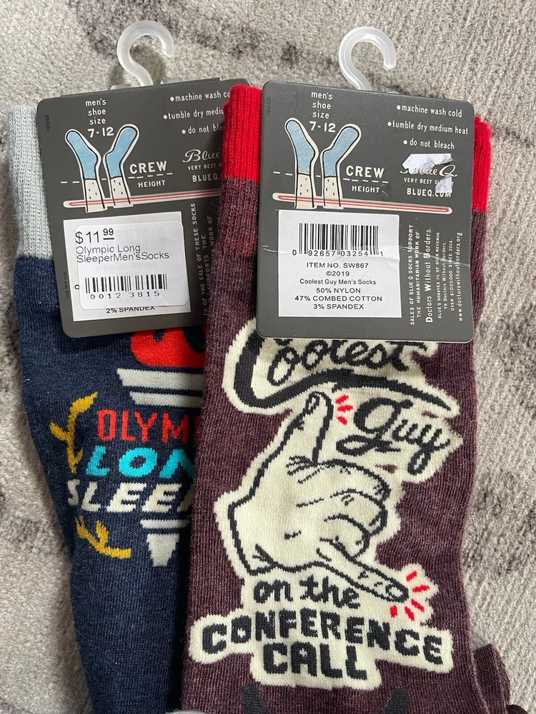 Lot 2 Men’s Blue Q Socks “Olympic Long Sleeper” And Coolest Men's Size 7-12