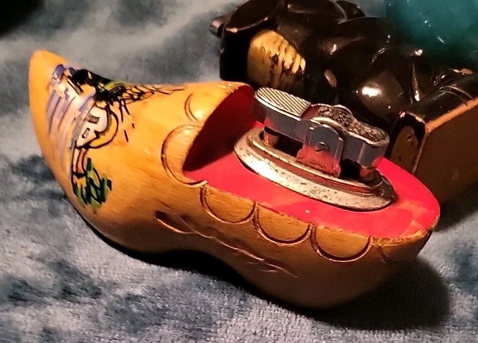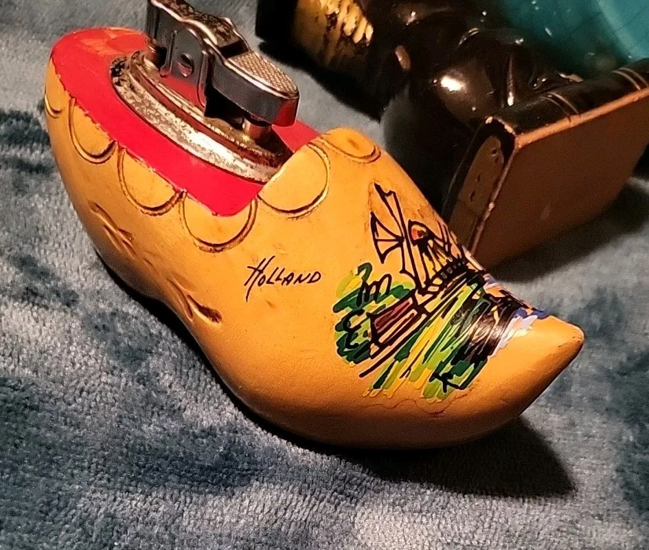 Add a unique touch to your collection with this Lot of 3 Vintage Table Lighters. These pieces boast new wicks and are themed around a charming donkey and a wooden shoe design with turquoise accents. Made in the United States, these lighters are a perfect addition for collectors and enthusiasts alike. The brand, Table Lighter, is known for its quality craftsmanship and attention to detail. Mix up your collection with these one-of-a-kind pieces.