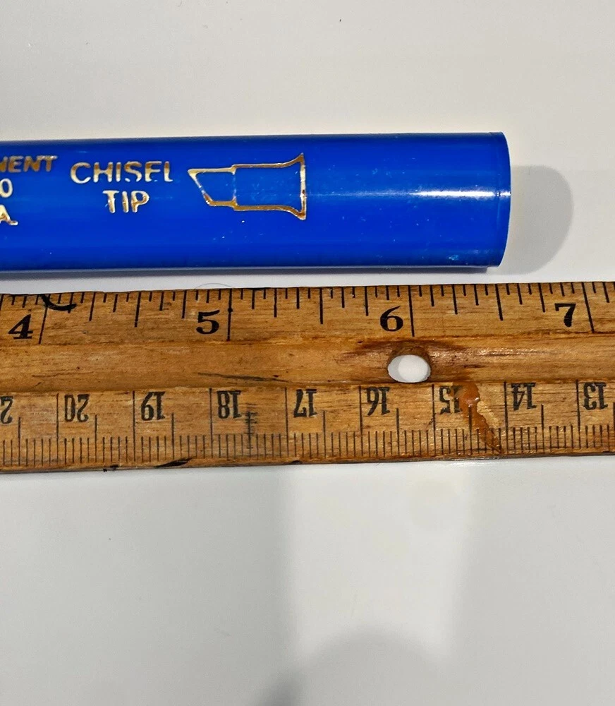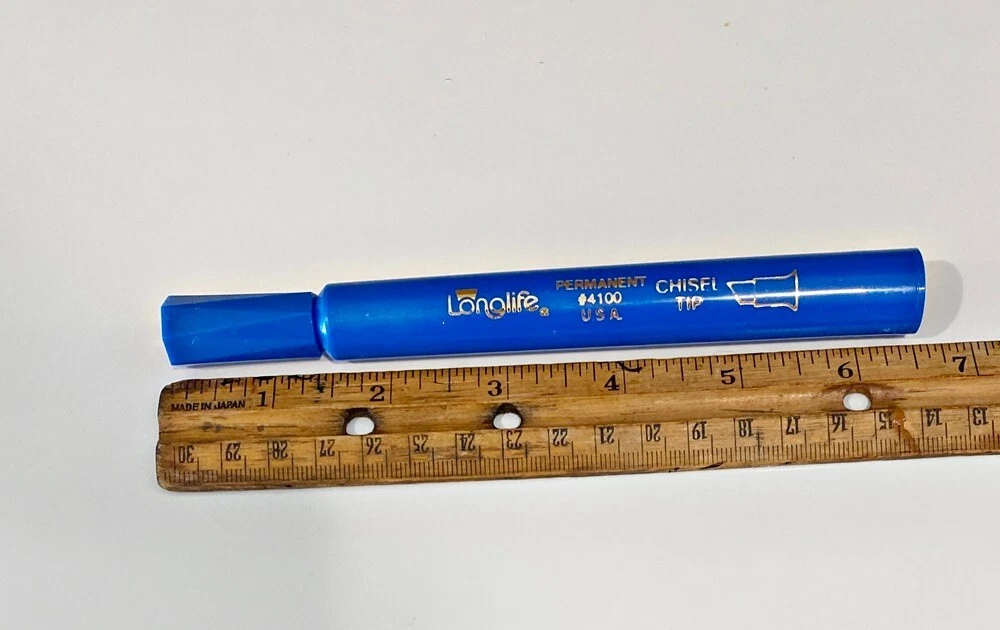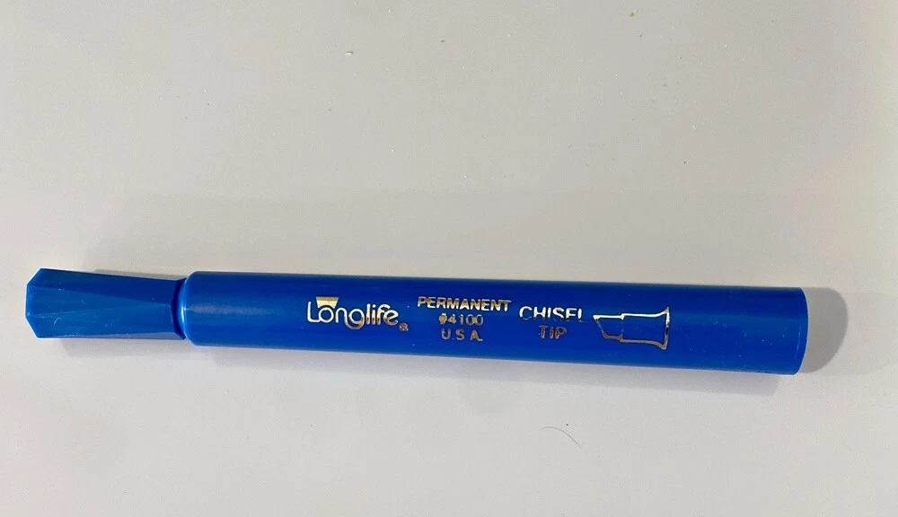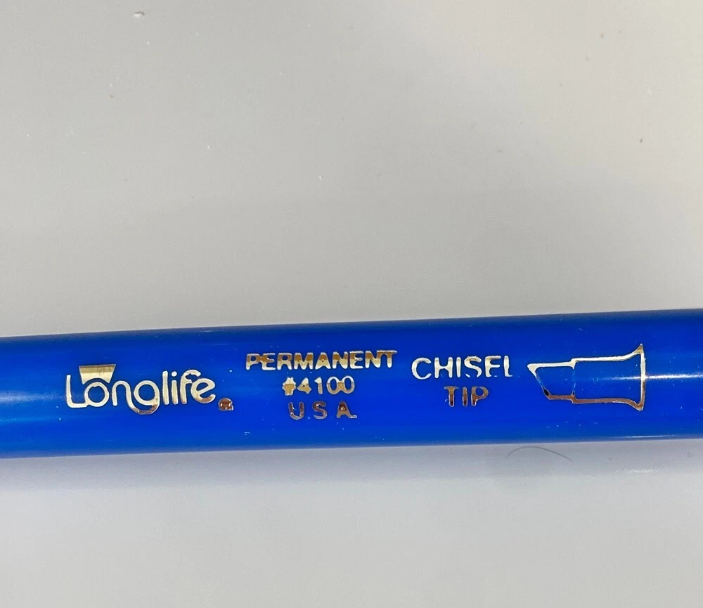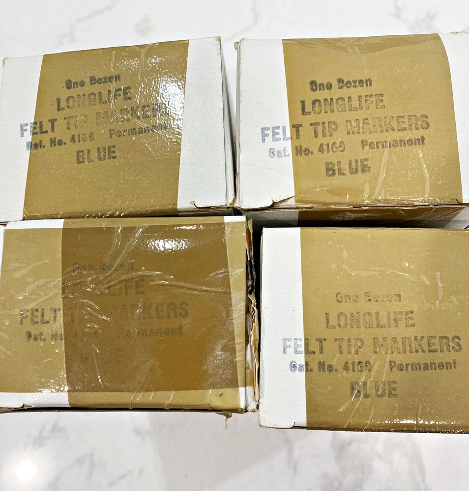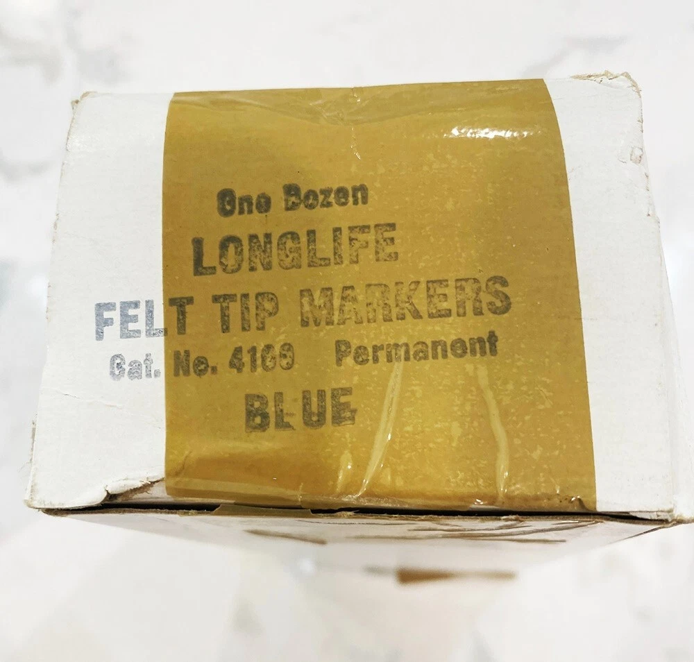 Lot 40 Pcs New Vintage LongLife Markers Blue Felt Tip Permanent Chisel Tip USA You will get 40 of these markers that have never been used. There are 3 boxes of 12 markers each + 4 more from another box. I don't really know how old they actually are. I bought quite a lot of them back around 1987 from a well-known leathergoods manufacturer that was going out of business. Over the years they did serve me very well. These days my business is quite different from those good old days so I'm selling my excess inventory. These are all the same color - a nice rich royal blue color. Please do not hesitate to contact me if you have any questions. Thanks for Looking! RETURN POLICY: NO RETURNS ON THIS ITEM - i HOPE YOU UNDERSTAND