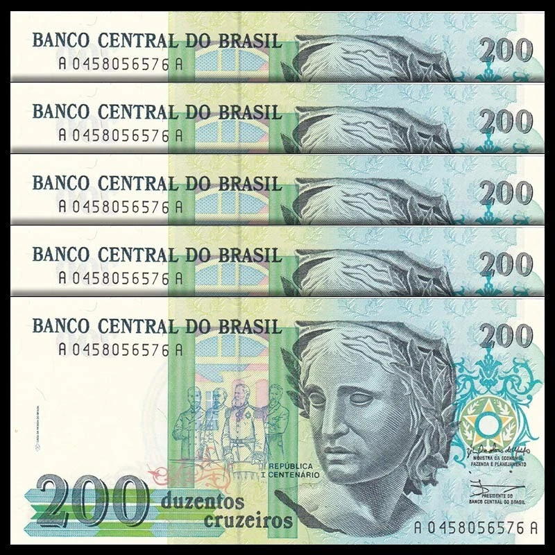 Lot 5 PCS, Brazil 200 Cruzados, ND(1990), P-229, UNC About US ------------------------------------ We are the biggest seller of real banknotes and coins in China started in 2008. We don't make copies.None copies in our store. About Notes & Coins ------------------------------------ The actual note may have a different serial number,signaturs and prefixs.Please use the image as a reference only. The notes and coins we sell are 100% real and UNC We can combine shipping for some items. We can provide Serial Number for lots notes. 100% Satisfaction Guranteed shipping ------------------------------------ we ship the item via USPS to USA ( 10-15 days for shipping), Via china-post to world( 10-30 days for shipping). Some remote area maybe take a little longer, Please be patient. we will ship out in 48 Hours after the payment is cleared. Feedback ------------------------------------ If there is a problem, contact us in advance, please don't leave negative/neutral feedback without communication. We'd appreciate the opportunity to work with you to ensure a successful transaction. Please feel free to E-mail us with any questions,We will respond in 24 hours .