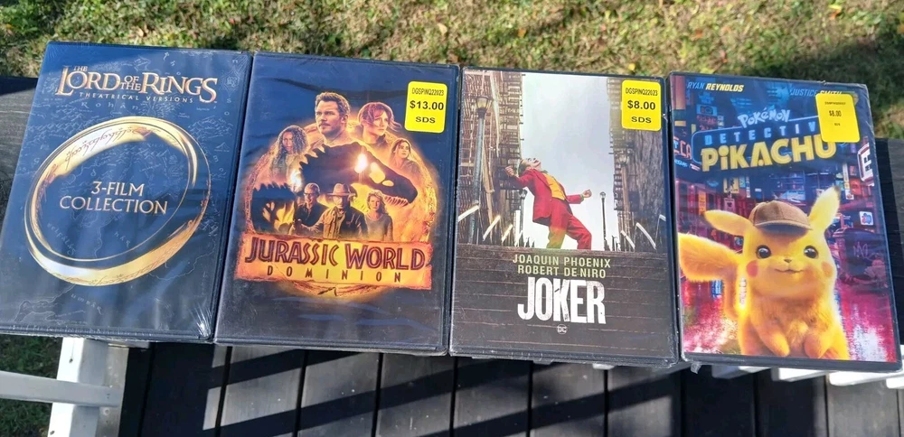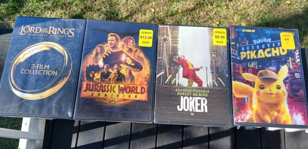 Lot of 6 DVD's total including - Jurassic World, Joker, Pokémon Pikachu, Lord Of The Rings the 3 Film Collection. All are new and sealed!! Fast shipping