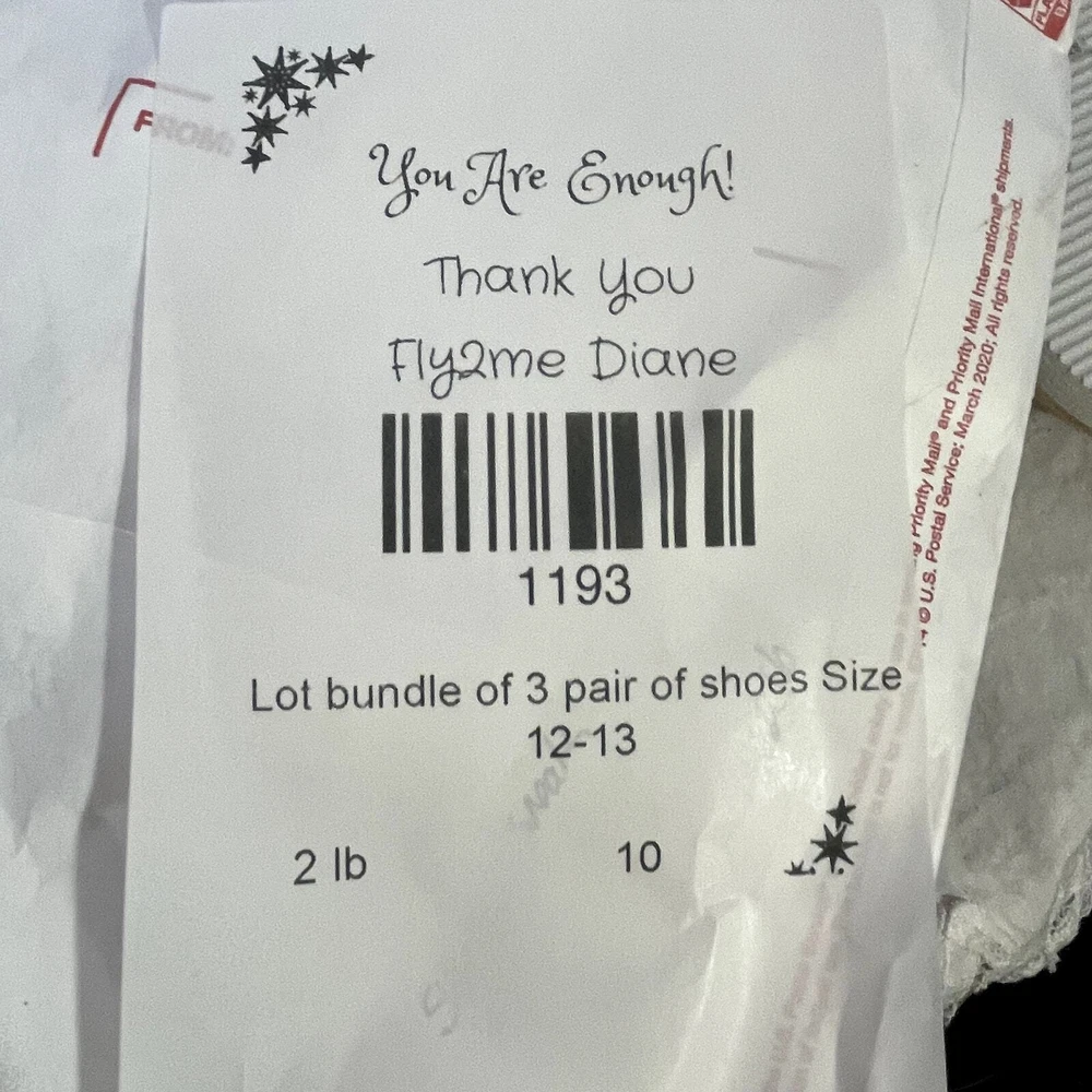 Lot Bundle of 3 pair of Girl's shoes 2 flip-flops 11/12 1 sneakers 13 Flip flops NWT New with tags multi-color 11/12 other worn with neon green and black sneakers Bahama Bay size 13 pink and white check no strings You are Enough 1193 $10 2 lb