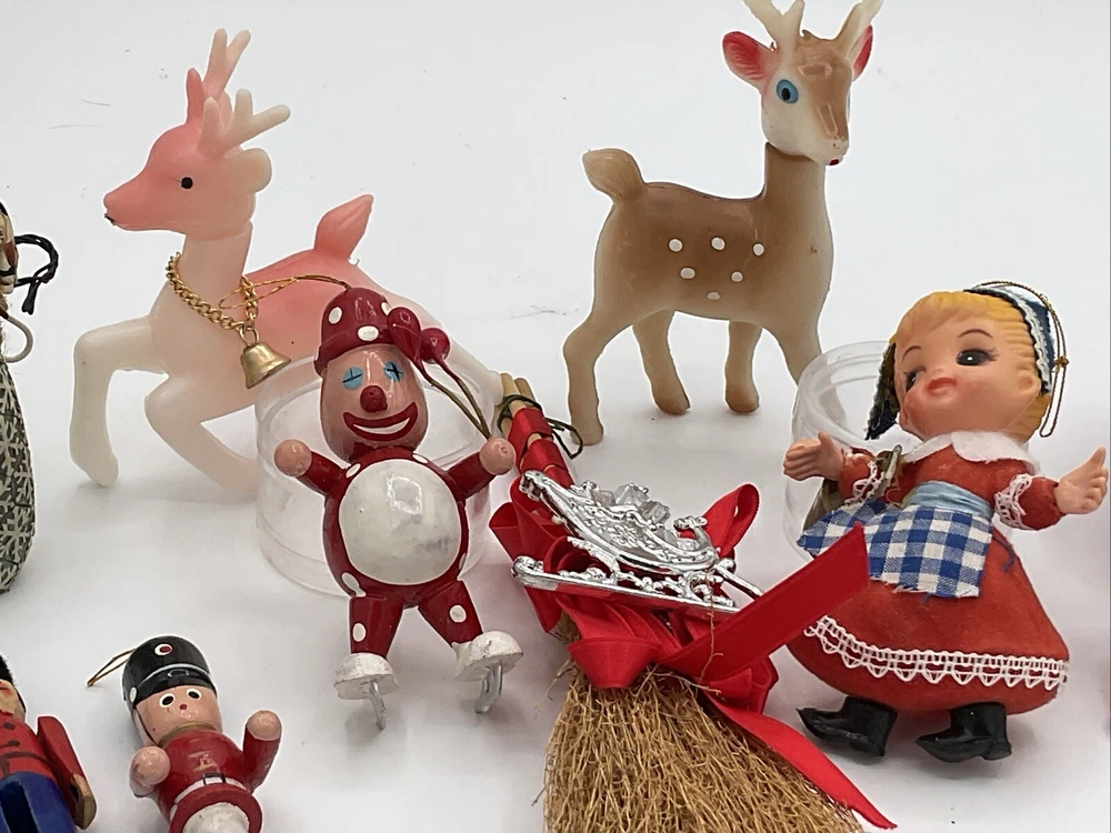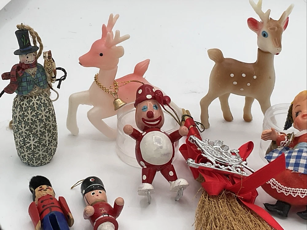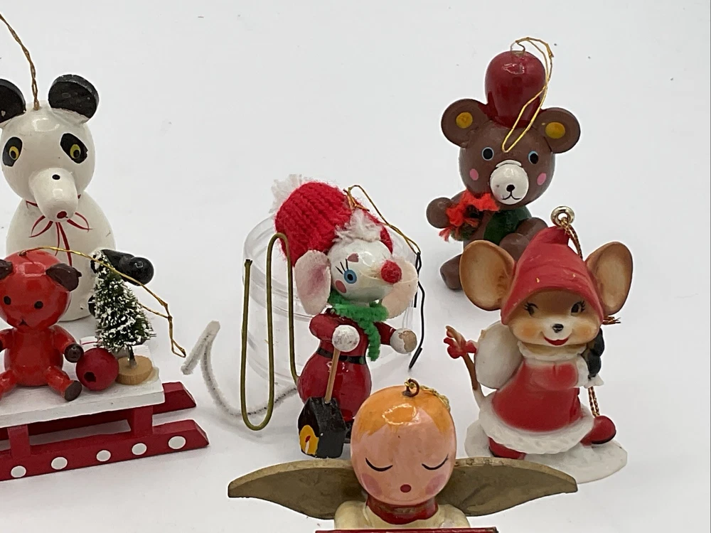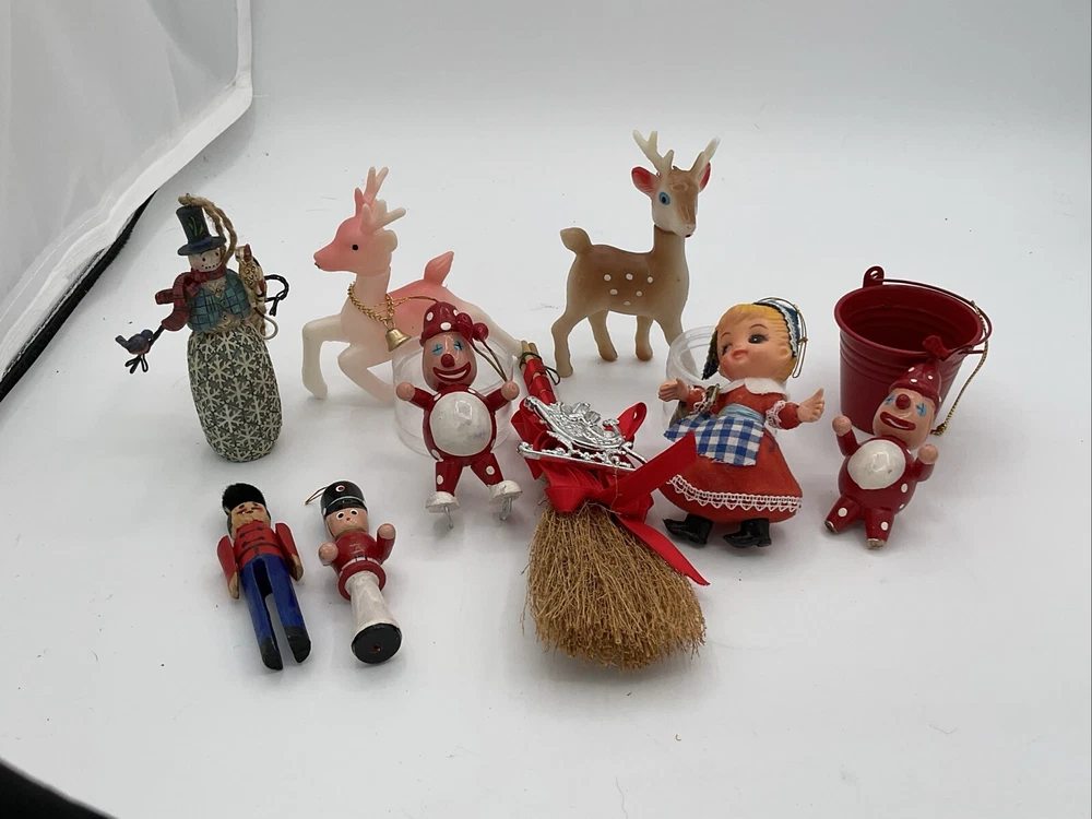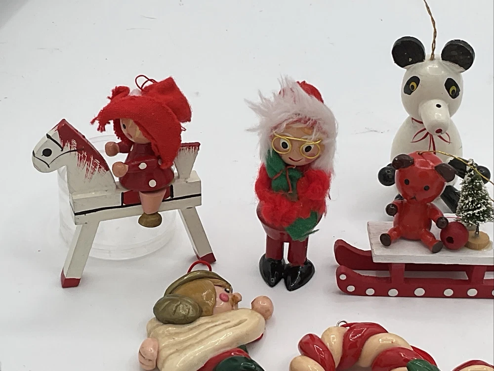Lot Of 10 Vintage Christmas Ornaments Wood Animals Toy Soldier Deer Dutch Girl