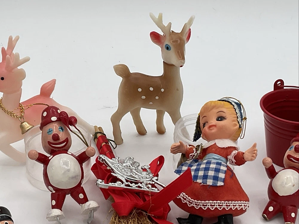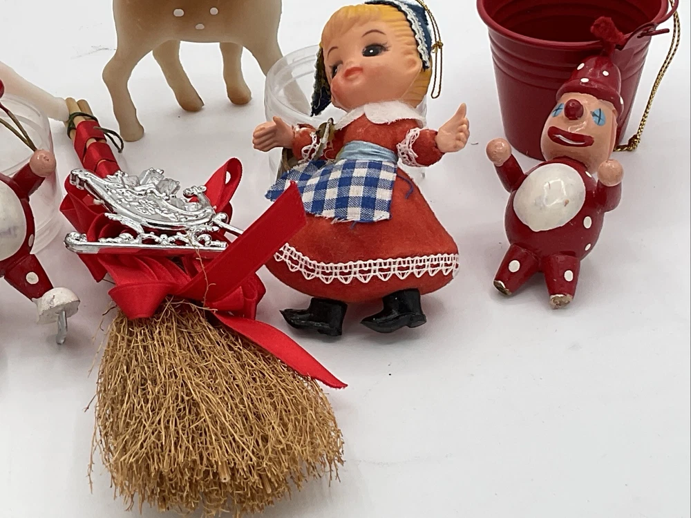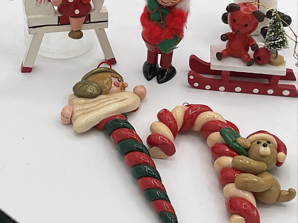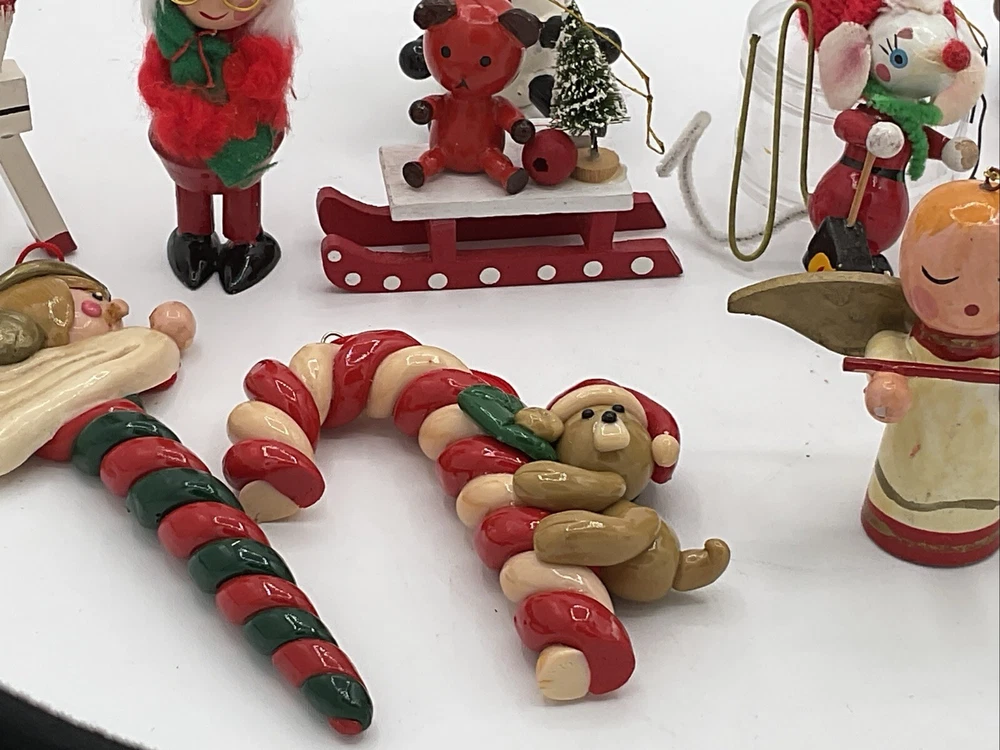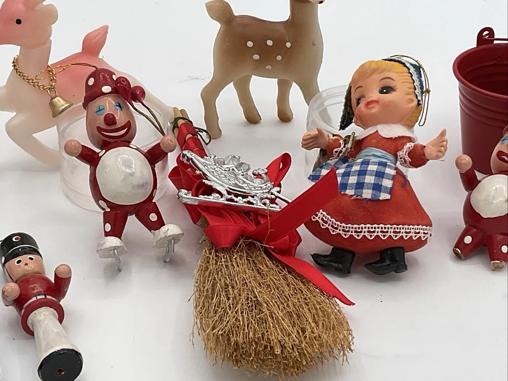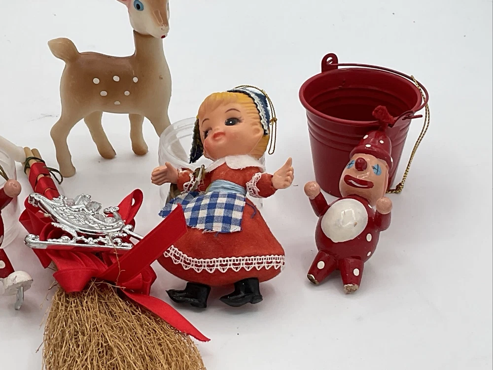 Lot Of 10 Vintage Christmas Ornaments Wood Animals Toy Soldier Deer Dutch Girl