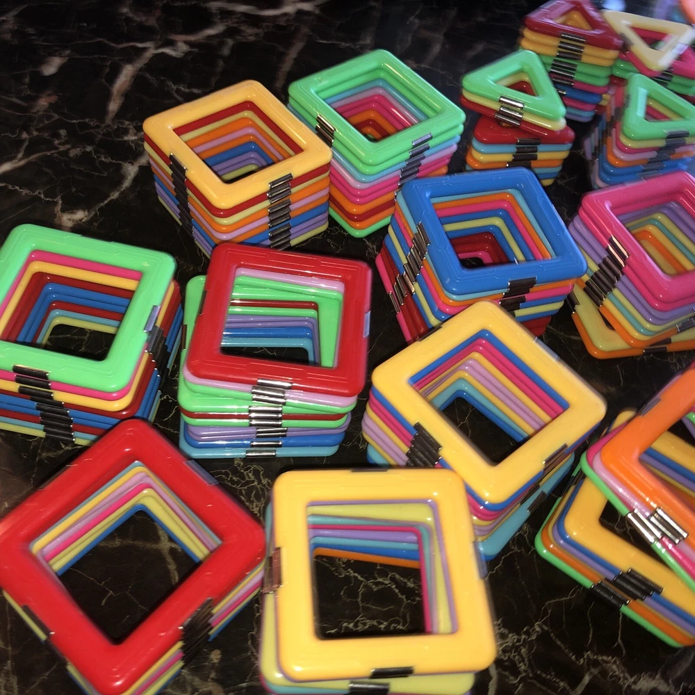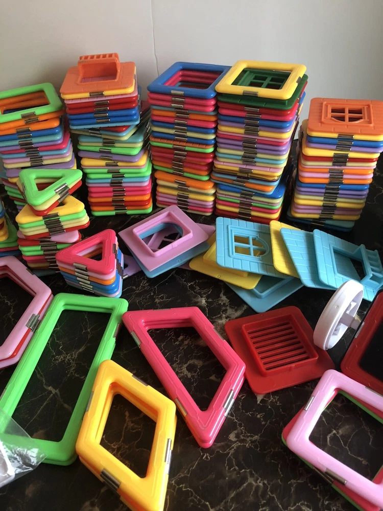 Lots of fun play can be had with this huge lot. There are 46 nonmagnetic attachable pieces included. There are 180 magnetic pieces. All that is included is pictured. Please see photos