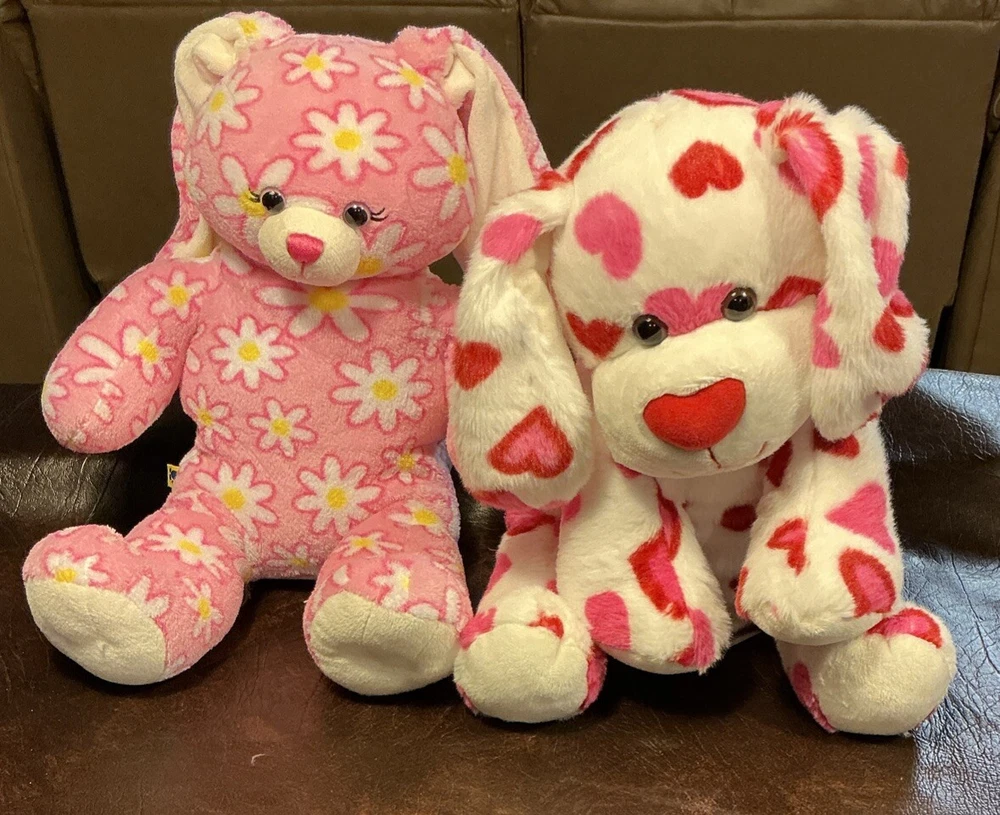 Lot Of 2 Build-A-Bear Workshop Pink Floral Bunny Rabbit & Valentine Hearts Dog Plush stuffed animal 16" Bunny very good condition Dog like new condition Comes from a smoke free home