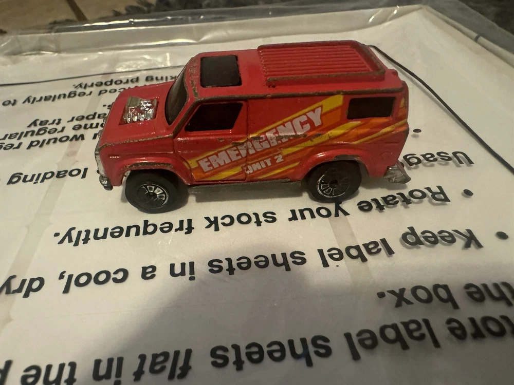1) 1977 Matchbox ambulance made in china 2) Hot Wheels T-Bucket No. 68 (New in package) 3) 1984 Matchbox Corvette convertible 4) Newport Chevy truck made in Hong Kong 5) 1965 Matchbox Lesney 8 wheel crane 6) #11 Chevy corvette 7) Intex-Zee toys Kenworth W900 8) Porsche 911 silver made in Hong Kong 9) play Art firetruck made in Hong Kong 10) Commanders transformer, Motrin, McDonald’s 11) 1989 matchbox Chevy Corvette 12) 1980s BMW 325 I Cab convertible 13) corgi Mercedes made in Great Britain 14) 1970s six hot wheels US mail truck 15) 1975 hot wheels Ramblin wrecker 16) 1980 Kenner emergency unit two 17) majorette 275 Renault made in France 18) 1979 matchbox refuse truck UK 19) play custom van Hong Kong number four 20) 1980 hot wheels mini trek 21) 1977 hot wheels, red fire chief 22) 1984 hot wheels Pontiac Fiero zm4 23) majorette Lamborghini number 257 24) mercury State police car made in macaw