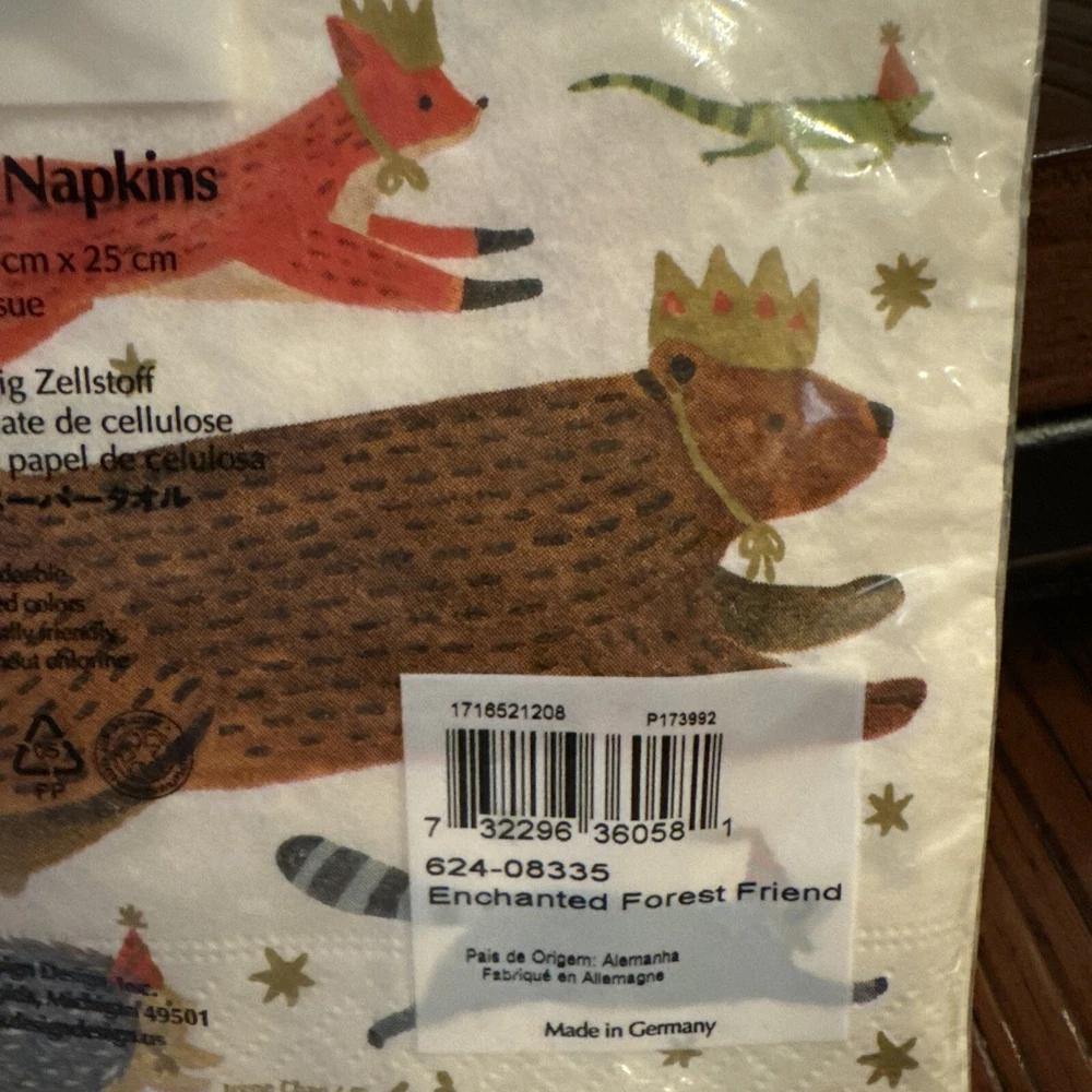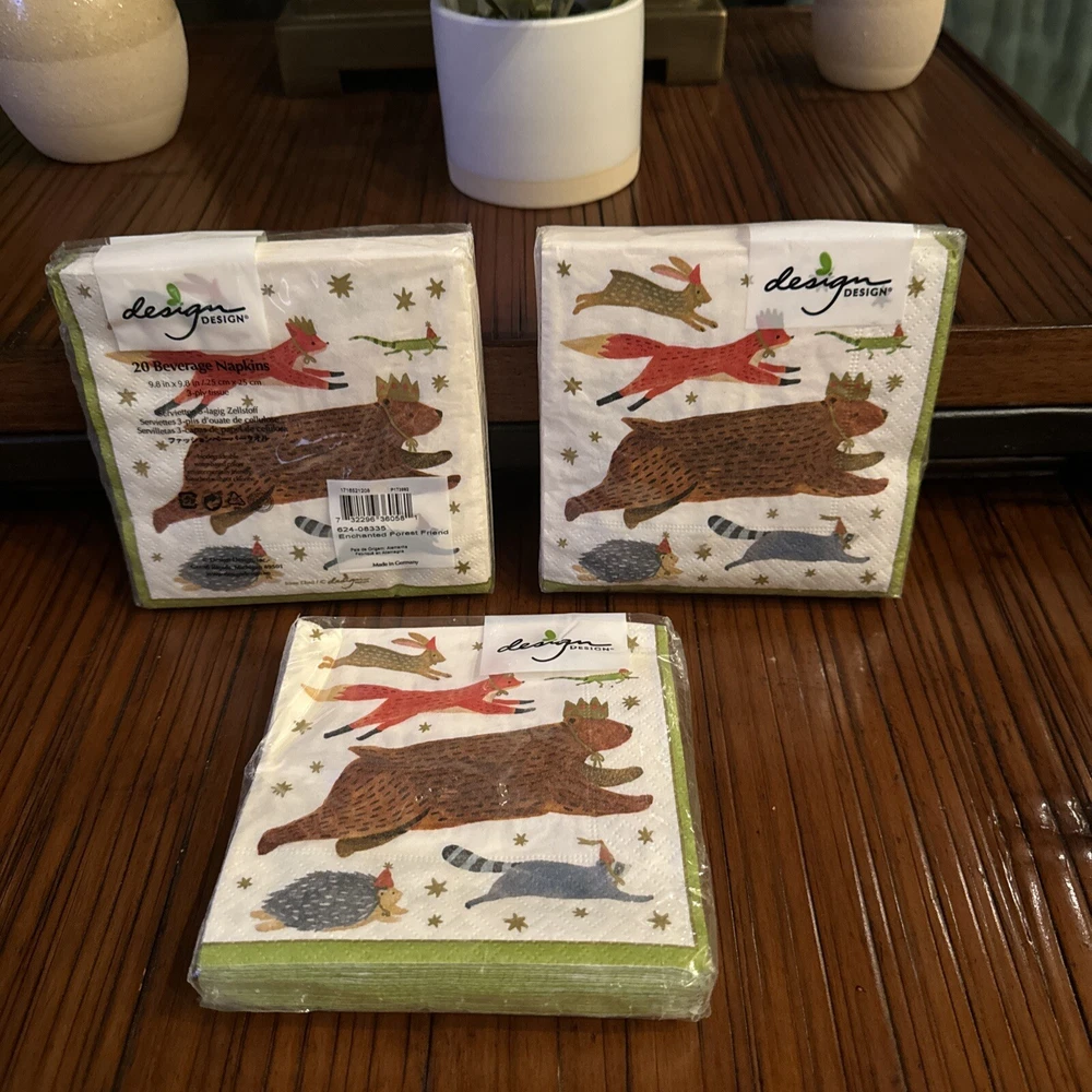 Lot Of 3 20 Ct. Design Design Paper Napkins Animals Enchanted Forest Germany New cocktail napkin 60 napkins total new in package