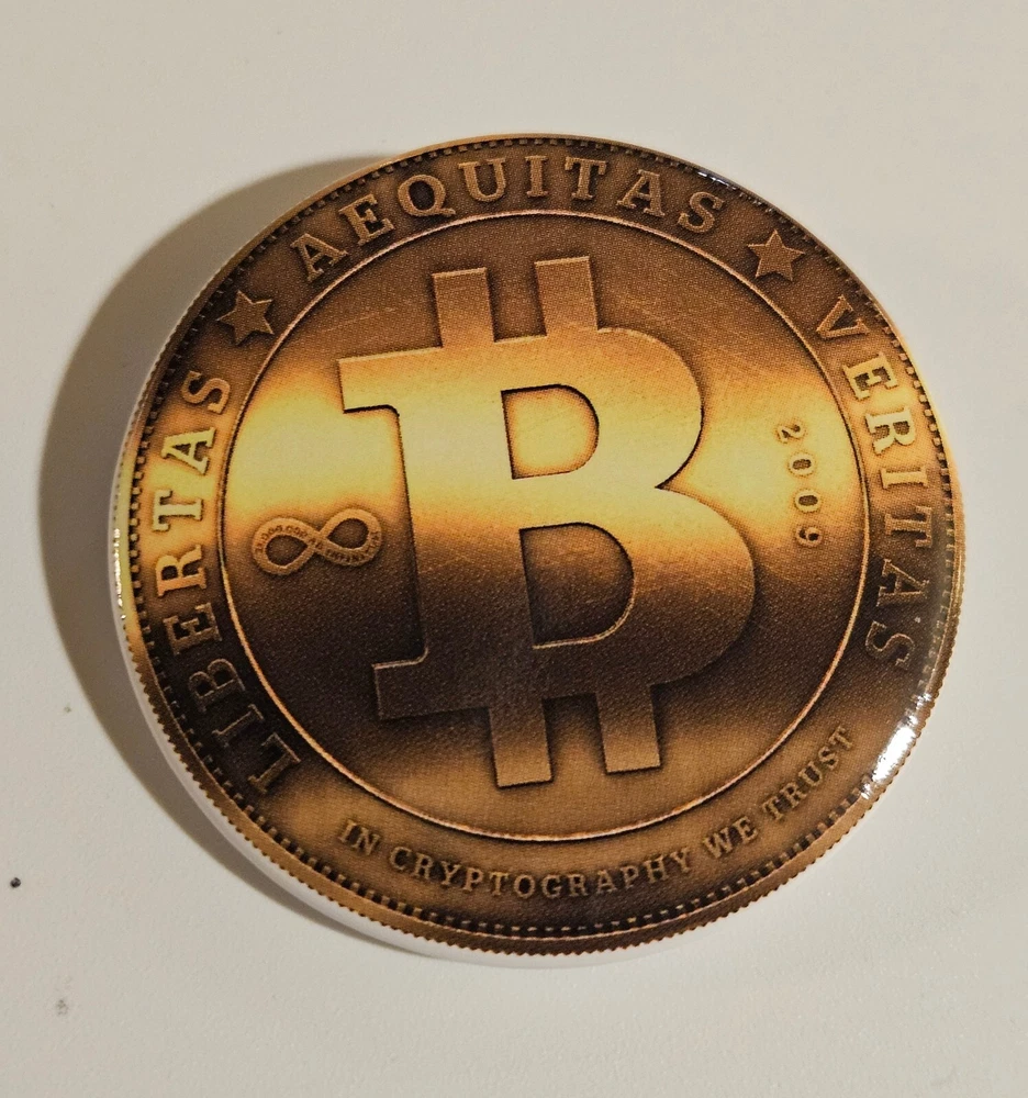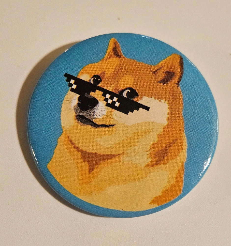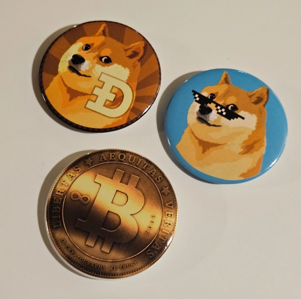 Lot Of 3 Dogecoin / Bitcoin Doge Badge Buttons Pinback Pins 38mm Cryptocurrency Crypto "In Cryptography We Trust"