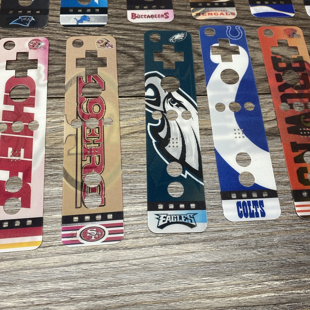 Lot Of 32 Lenticular Football Team Faceplates For Nintendo Wii Remote Lot of 32 faceplates in good condition. They have some marks. Two have some sticker residue on them. I’m assuming these will need some type of cover to keep them on a remote, as well as to keep them protected, but I’m not sure. Please see all photos.
