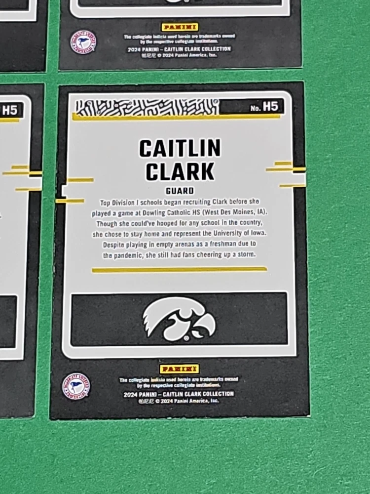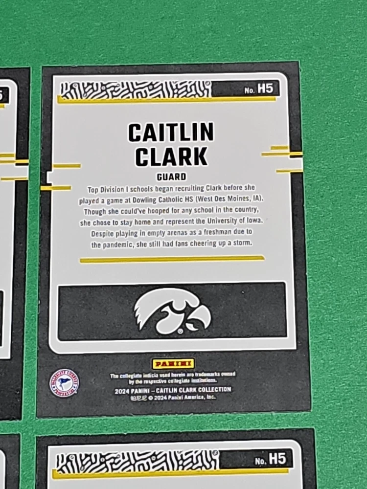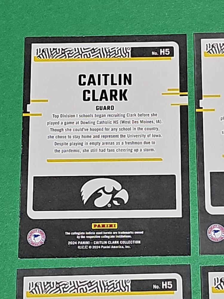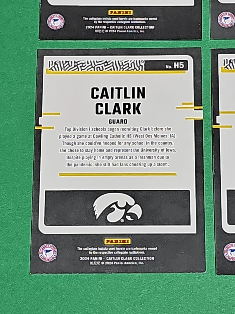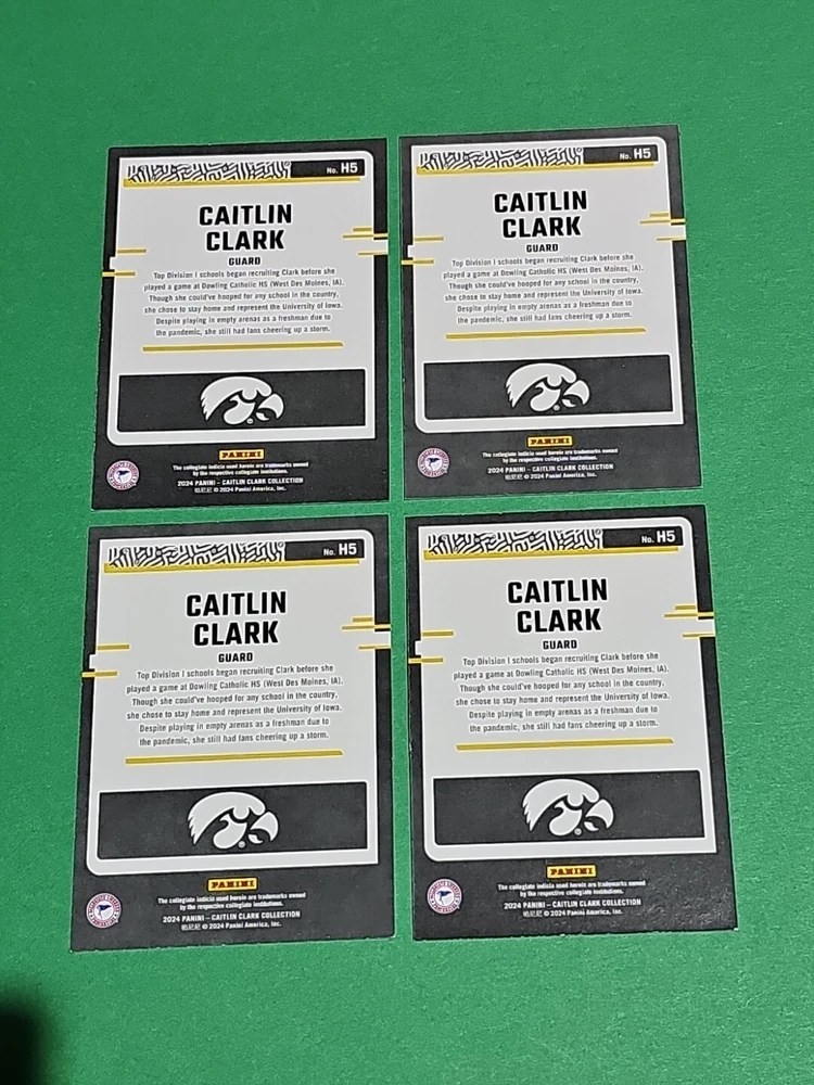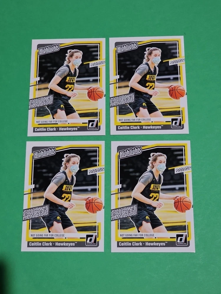 You will receive the exact cards pictured. This Lot of 4 Caitlin Clark Rookie 2024 Panini Donruss Highlights Iowa Hawkeyes Cards No. H5. Pay only $1.50 for shipping on your first cards won & 50 cents per lot of cards won in auctions up to $5.00. $5.00 is the maximum shipping you will pay, no matter how many cards you win! Please wait until you are done with all your purchases and I will send a combined shipping invoice within 24 hours. Please check out all of my other great auctions going on now! I have several Caitlin Clark Auctions going on now! Thanks for looking & good luck!!