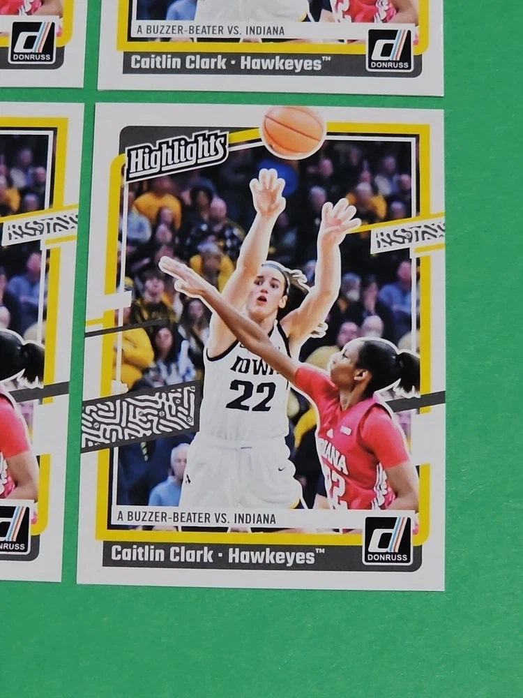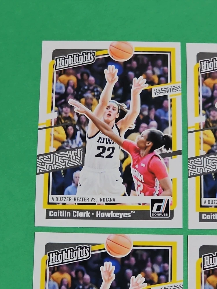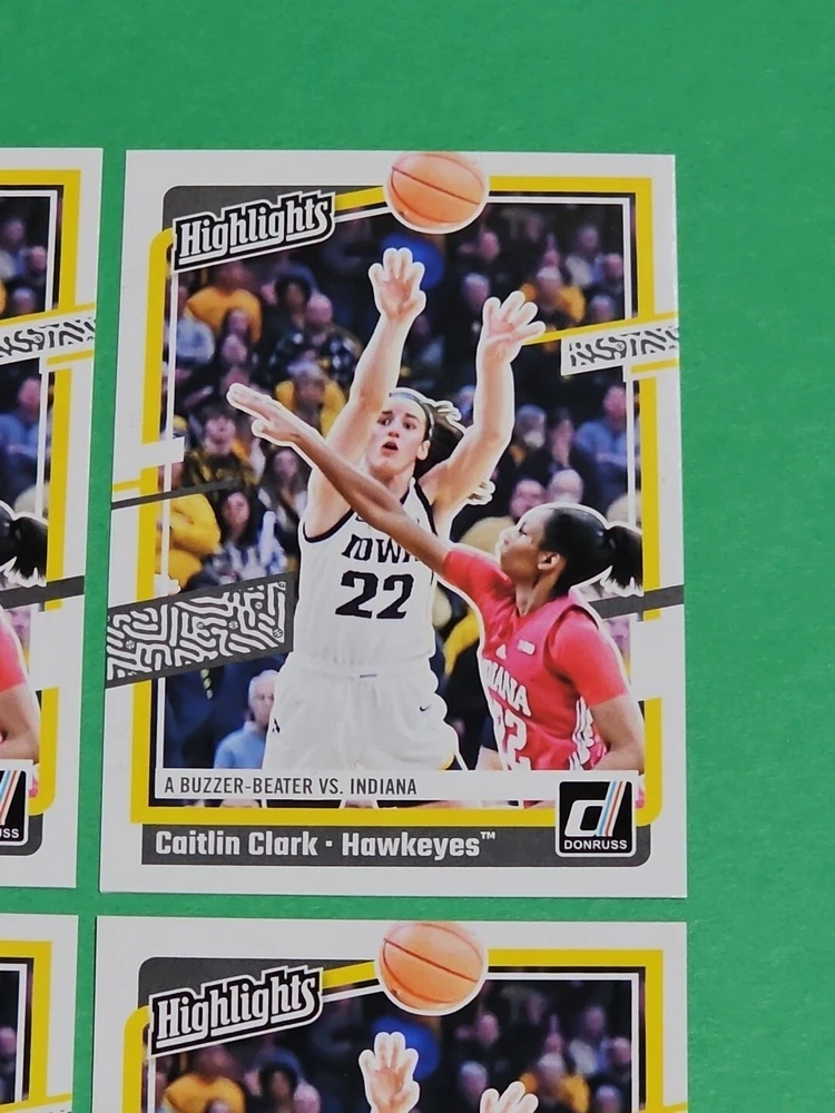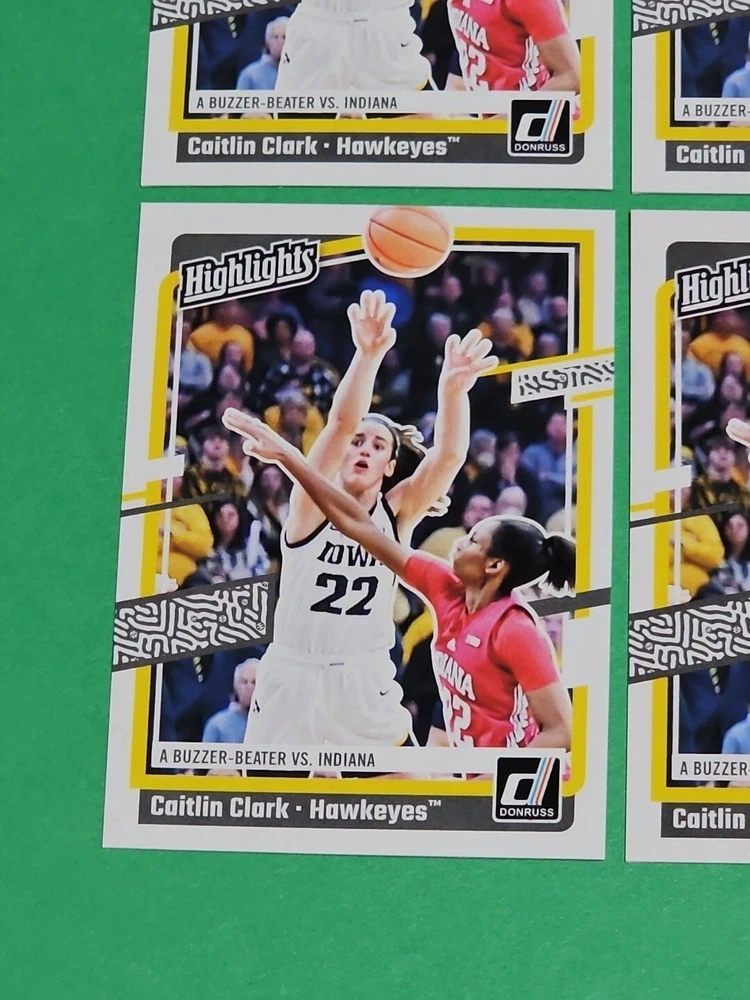 You will receive the exact cards pictured. This Lot of 4 Caitlin Clark Rookie 2024 Panini Donruss Highlights Iowa Hawkeyes Cards No. H6. Pay only $1.50 for shipping on your first cards won & 50 cents per lot of cards won in auctions up to $5.00. $5.00 is the maximum shipping you will pay, no matter how many cards you win! Please wait until you are done with all your purchases and I will send a combined shipping invoice within 24 hours. Please check out all of my other great auctions going on now! I have several Caitlin Clark Auctions going on now! Thanks for looking & good luck!!