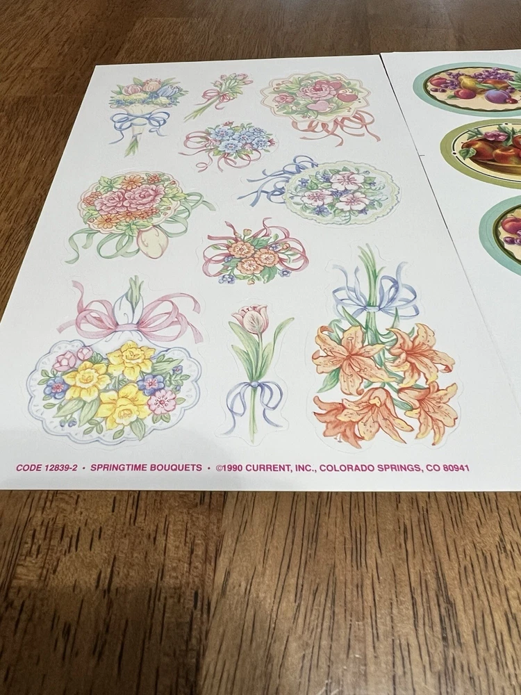 Lot Of 4 Sheets Vintage Cottage Core Stickers Floral Fruit Lynn Hollyn Current