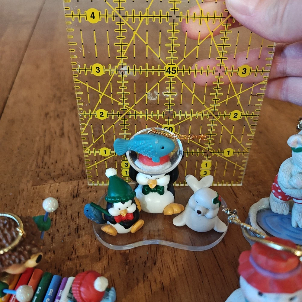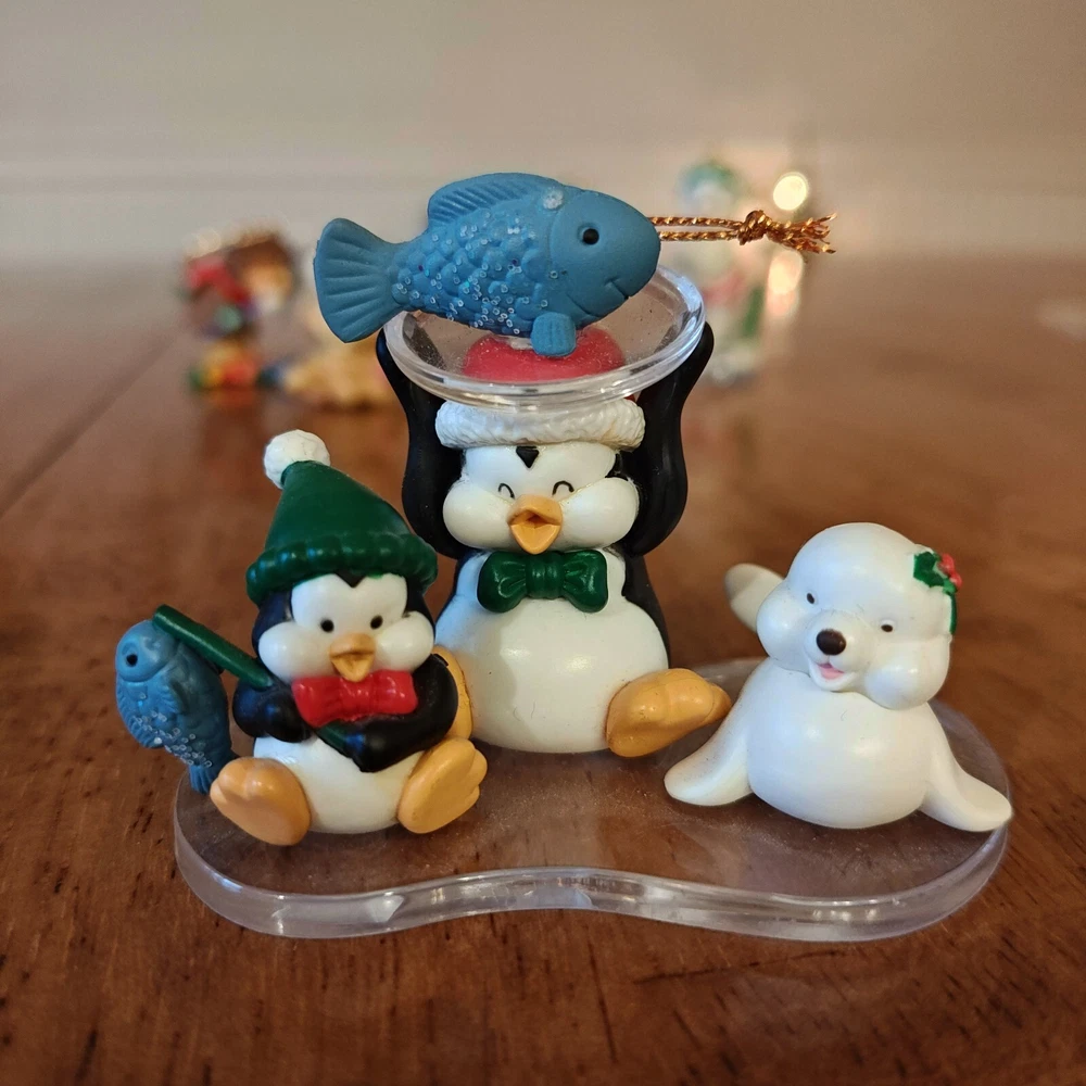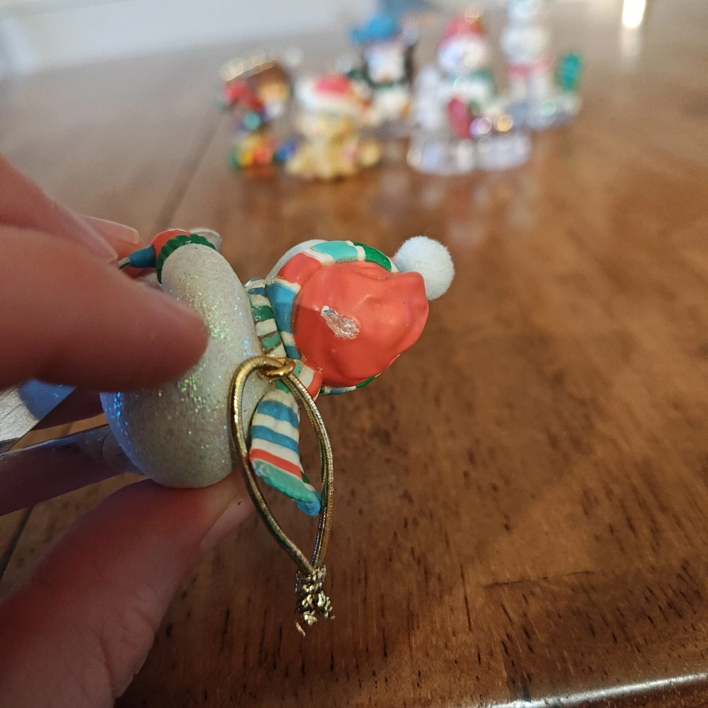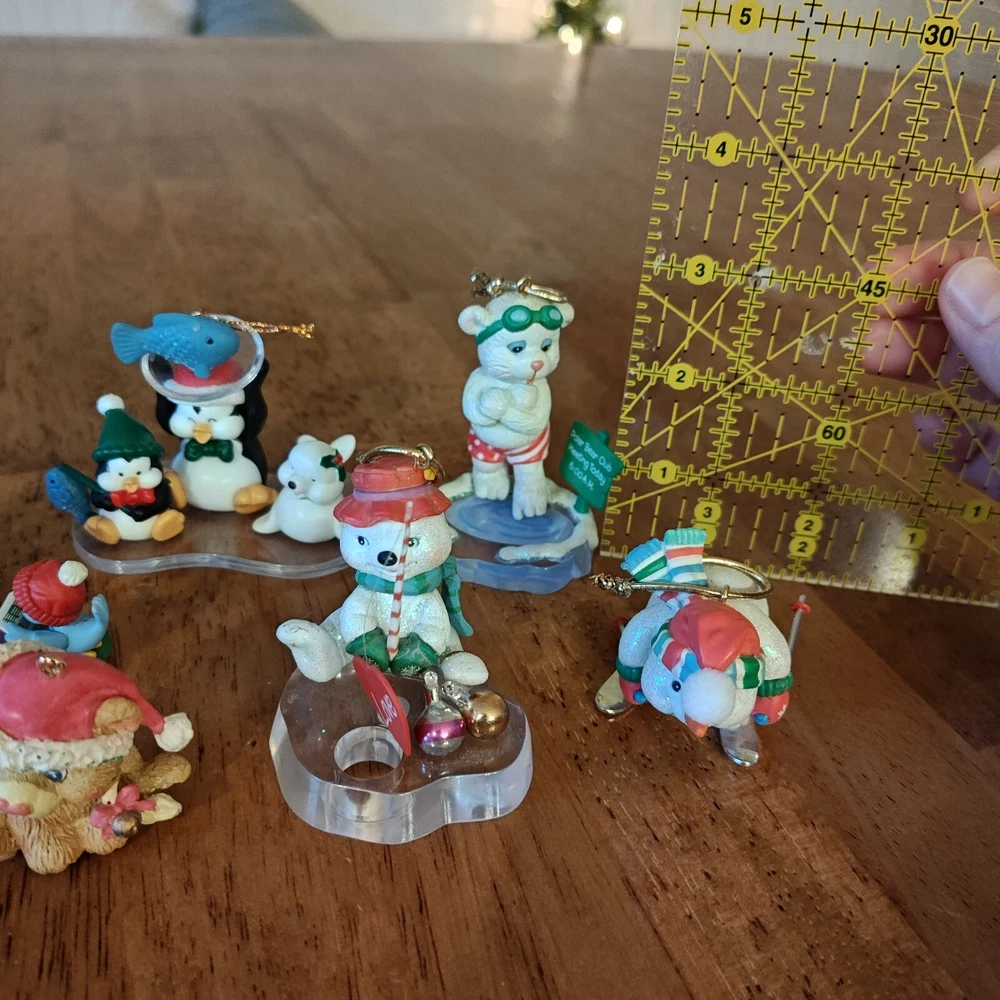 Lot Of 6 Cute Animal Vtg Christmas Ornaments Penguin Polar Bear Hedgehog Bird Some of these are Carlton Cards ornaments and I know the penguin one is Kirkland. All in great condition except the skiing snoman has a nick on his hat. See photos. Thanks for looking!