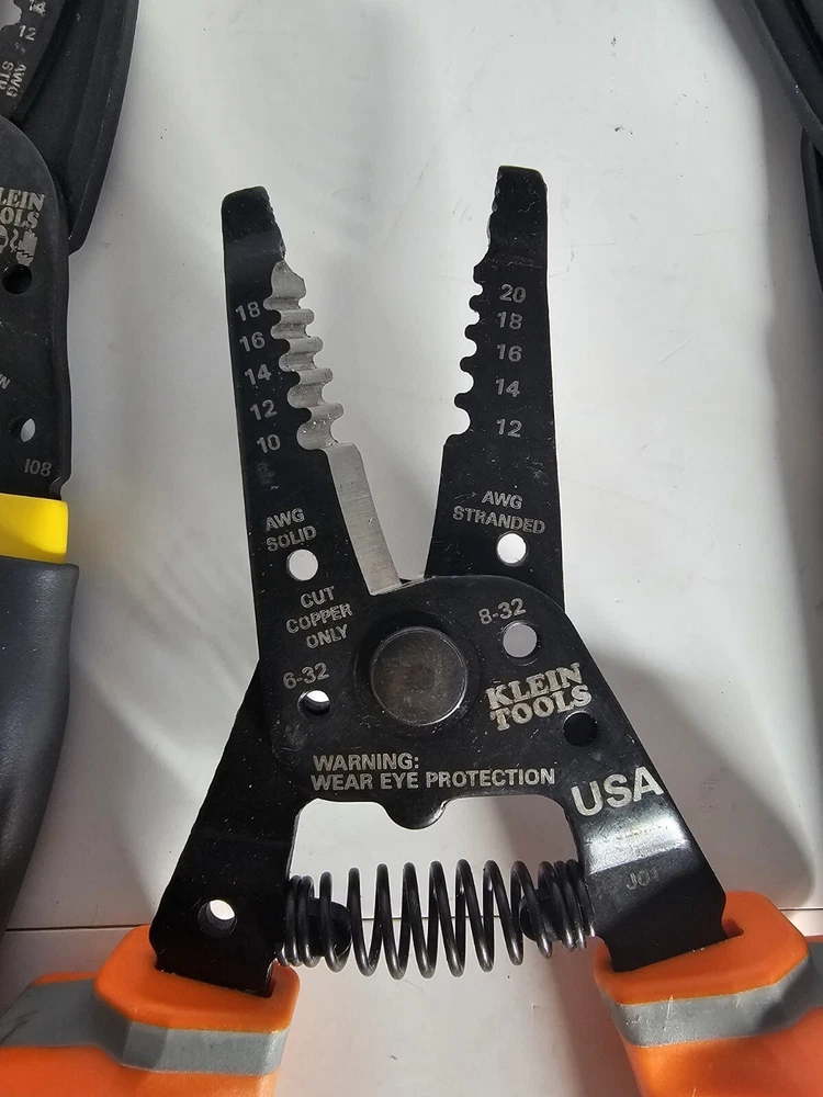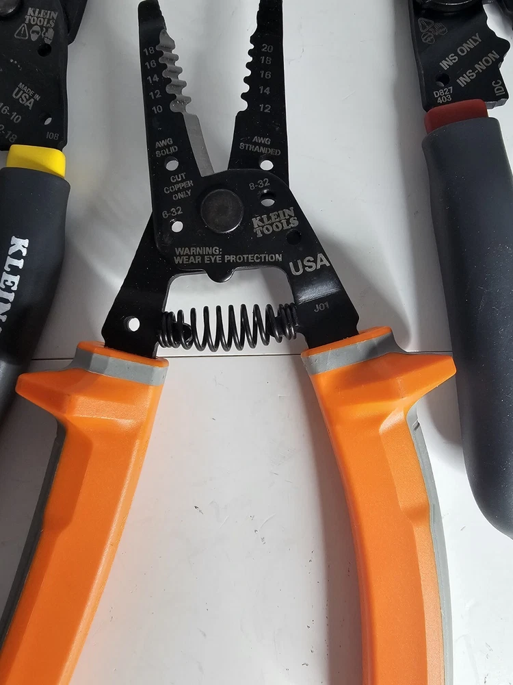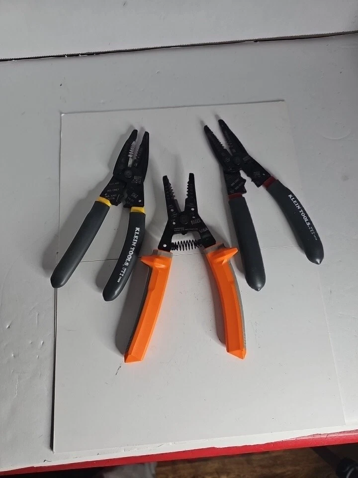 All 3 pairs of strippers are brand new but ship without there original packaging. This lot includes Klein Tools Wire Strippers 1000v Insulated 11055rins, 1009 & 1019-SEN. These tools are perfect for any business or industrial setting where electrical tools are needed. The set includes cable cutters and hand cable stripper, making it a versatile tool for any job. The brand of these tools is Klein Tools, known for their high-quality electrical tools. This lot falls under the category of electrical tool kits and is a great addition to any tool collection.
