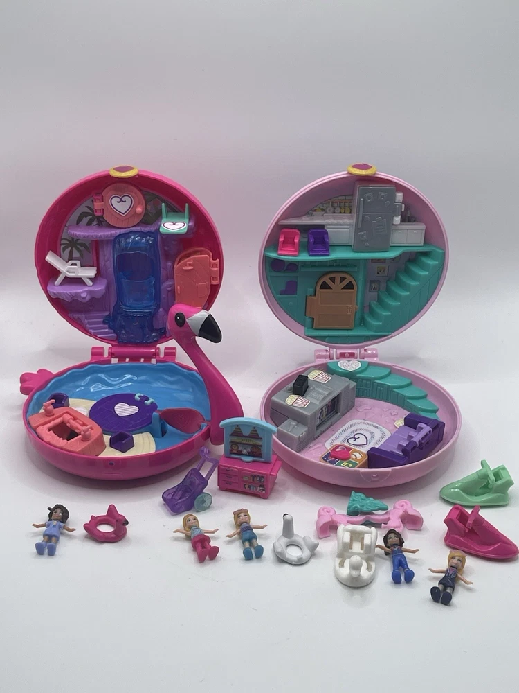 Lot Of Three Polly Pockets Cases Dolls And Accessories. Condition is Used. Shipped with USPS Ground Advantage.