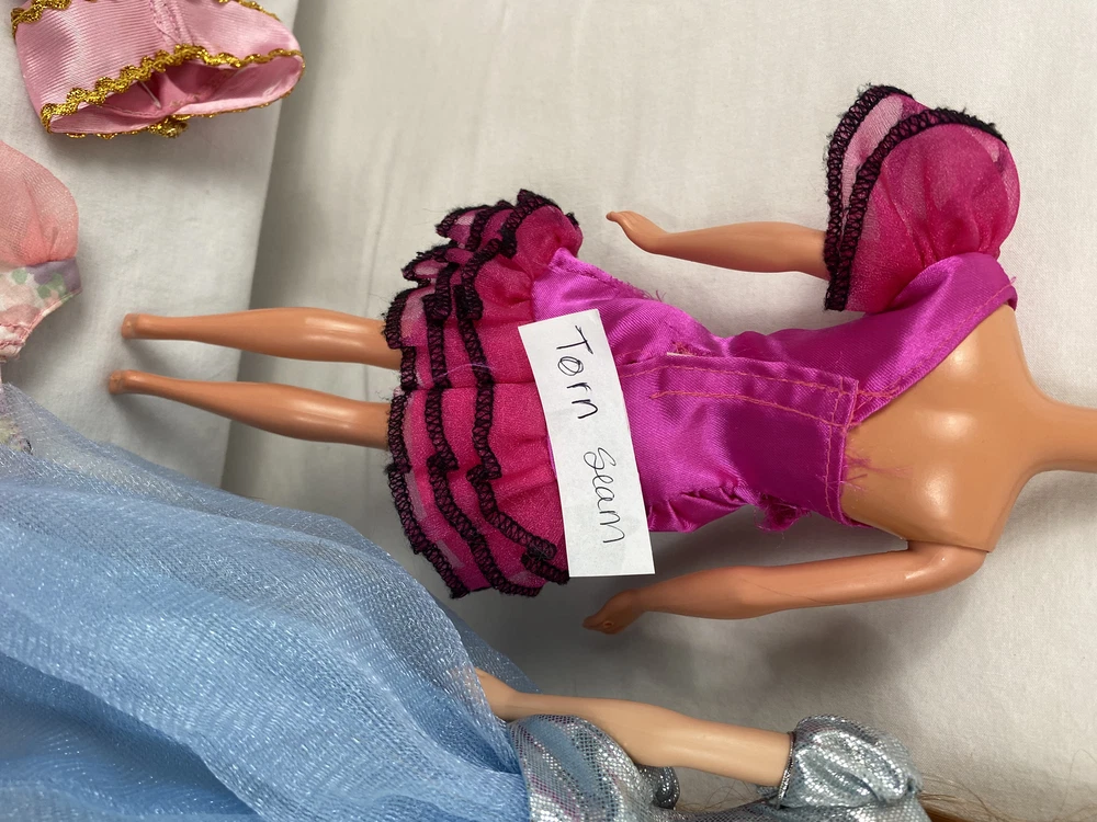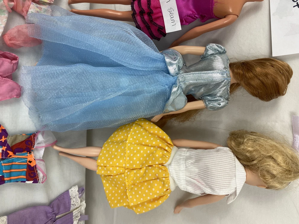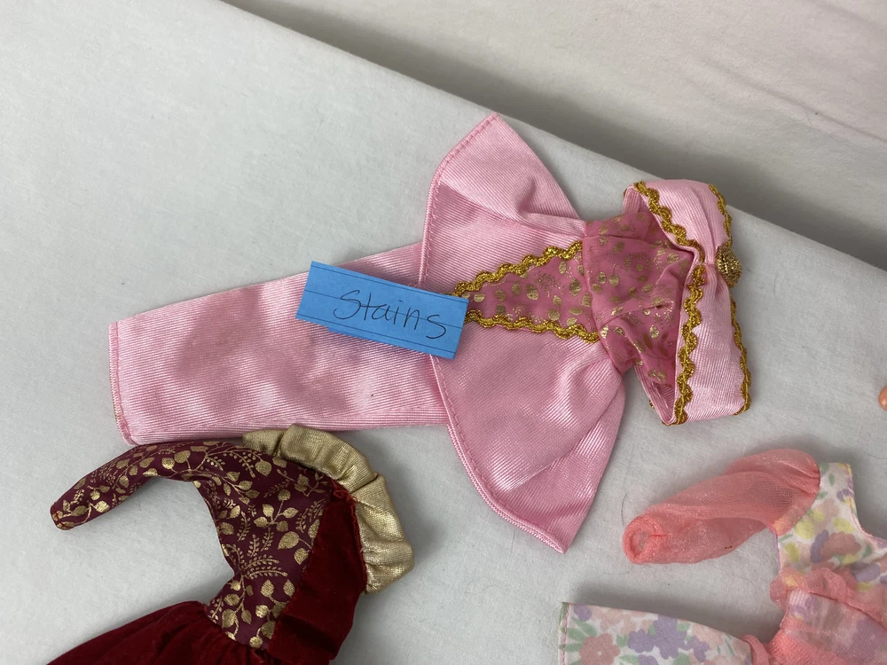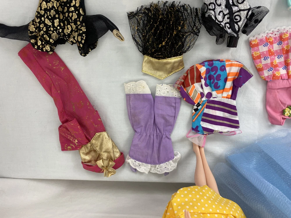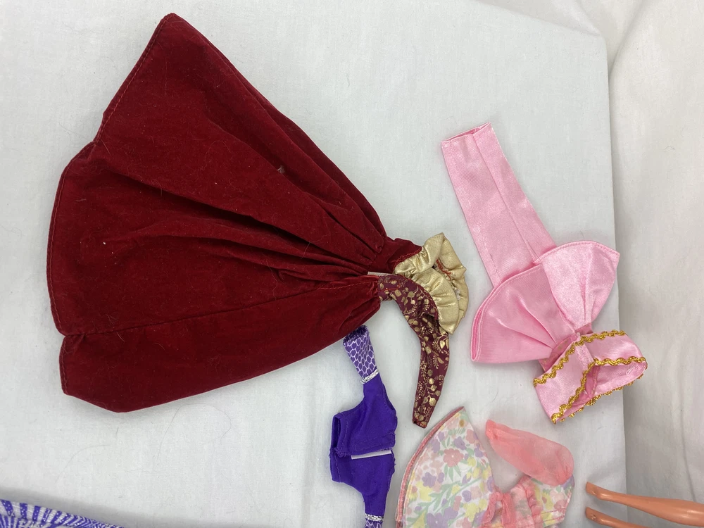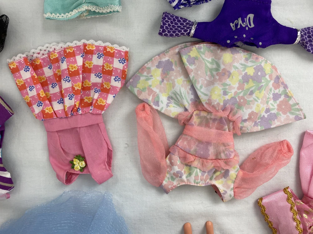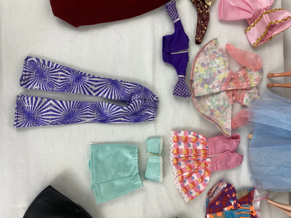 This lot includes 14 Lucky Brand Barbie clone outfits, featuring a mix and match collection of formal dresses, gowns,skirt, pants, and casual wear. The clothing styles are perfect for all occasions, whether for holidays, everyday wear, or special occasions. The outfits are compatible with 11 1/2 inch dolls, and the set weighs 0.4 lbs. The Lucky Brand Barbie clone outfits were manufactured in 1990-1999 and are original, vintage pieces. The clothing is made of lightweight cloth and does not require batteries. Examples of dolls that can wear this lot: Jazzie, Barbie, Midge, Teresa, and Stacie doll types, and the set comes with 14 Barbie clone looks that can be used for fashion and beauty themes. Please pay close attention to the pictures as they are considered part of the description. Sold as is, no returns.