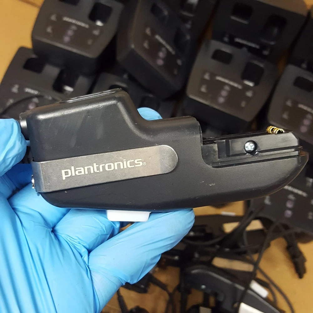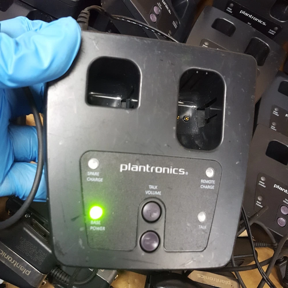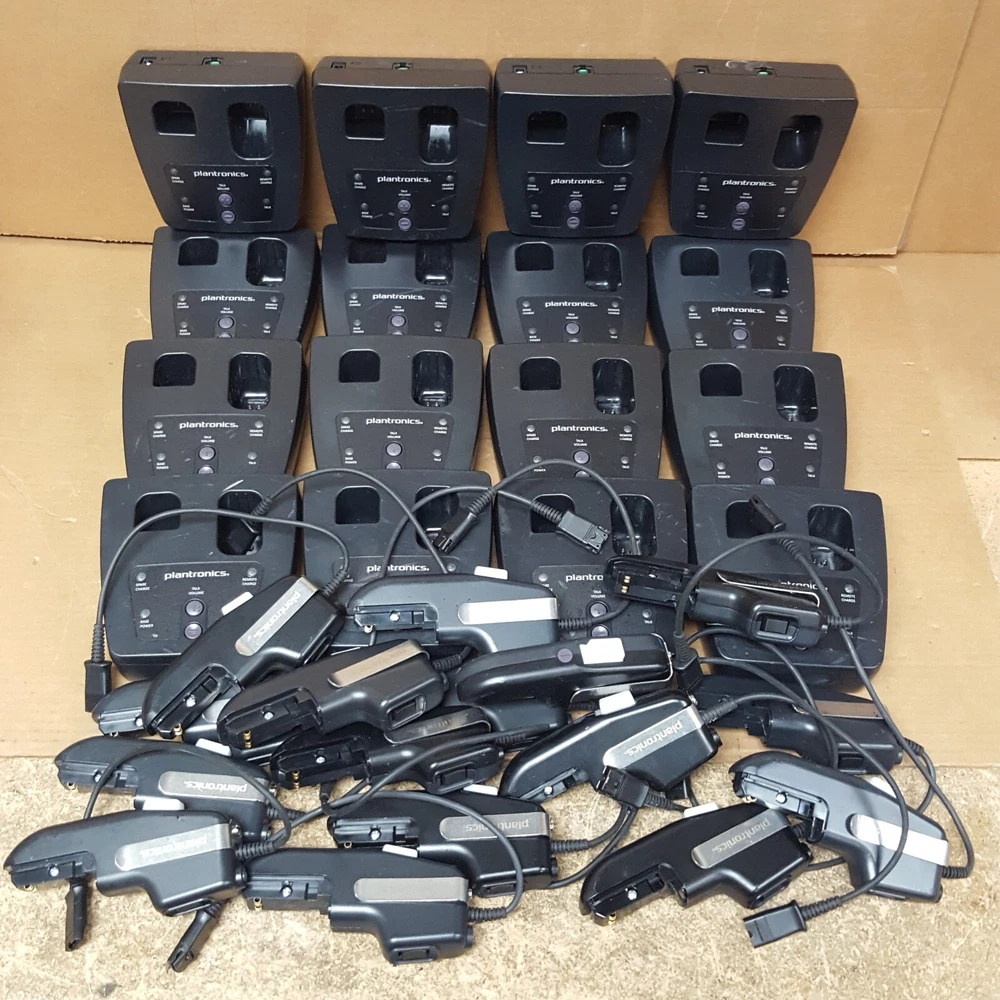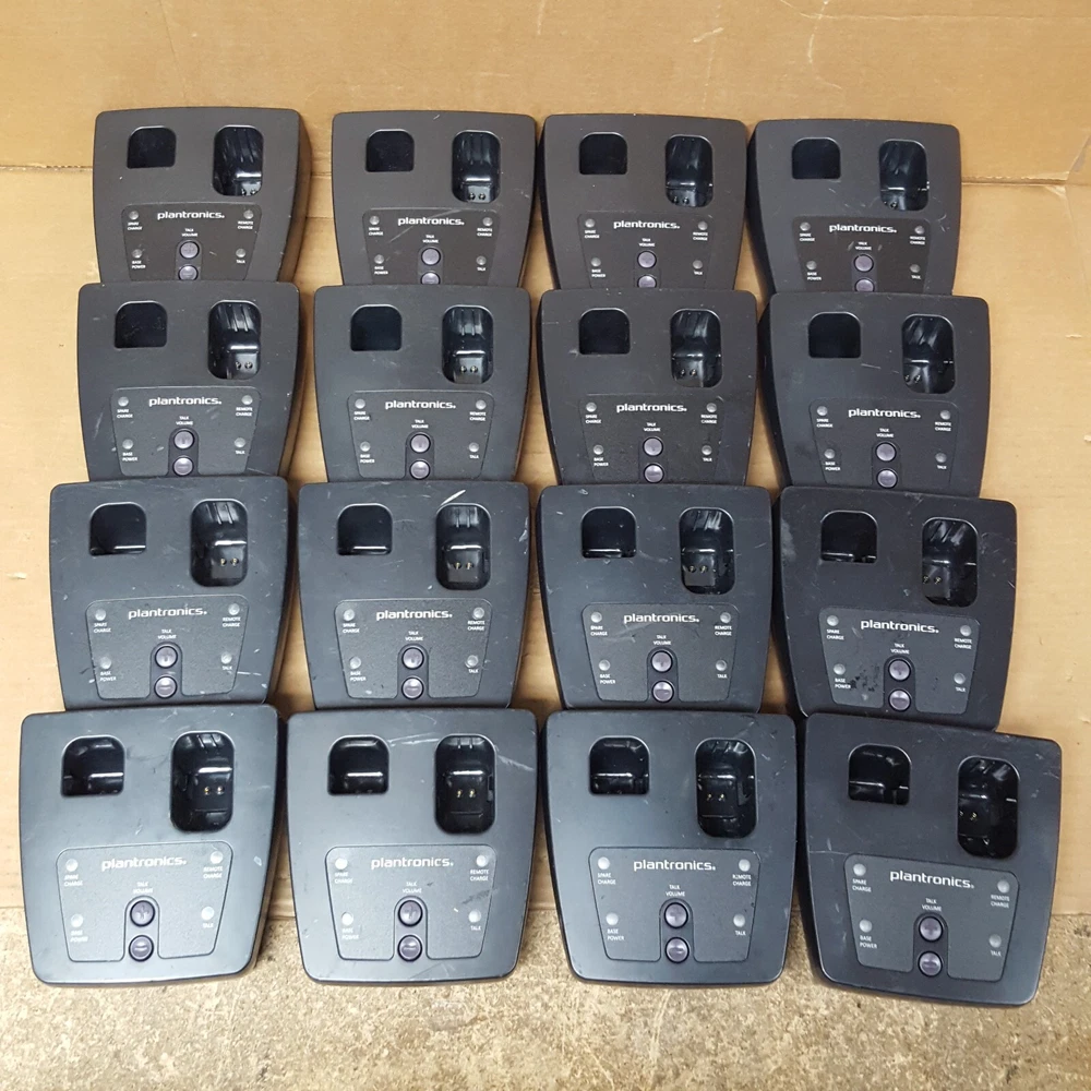 Power Cord (For Charging Base) NOT Included Battery (For Remote) NOT Included Includes: (16) Plantronics CA12CDSY Remotes (16) Plantronics Charging Bases SHS 2905-01 Removed From A Working Environment The unit has some signs of wear and normal use. (Scuffs-Scratches-Digs-Markings) Powers ON. NOT thoroughly TESTED. Product Guide and other accessories not included. We cannot offer technical support on any of our products. All units are sold without manufacture warranty information. Includes Only Parts Displayed In Pictures (Refer to pictures provided) Sold as pictured Returns Accepted Any questions please contact seller via seller contact link/tab. Thank You.