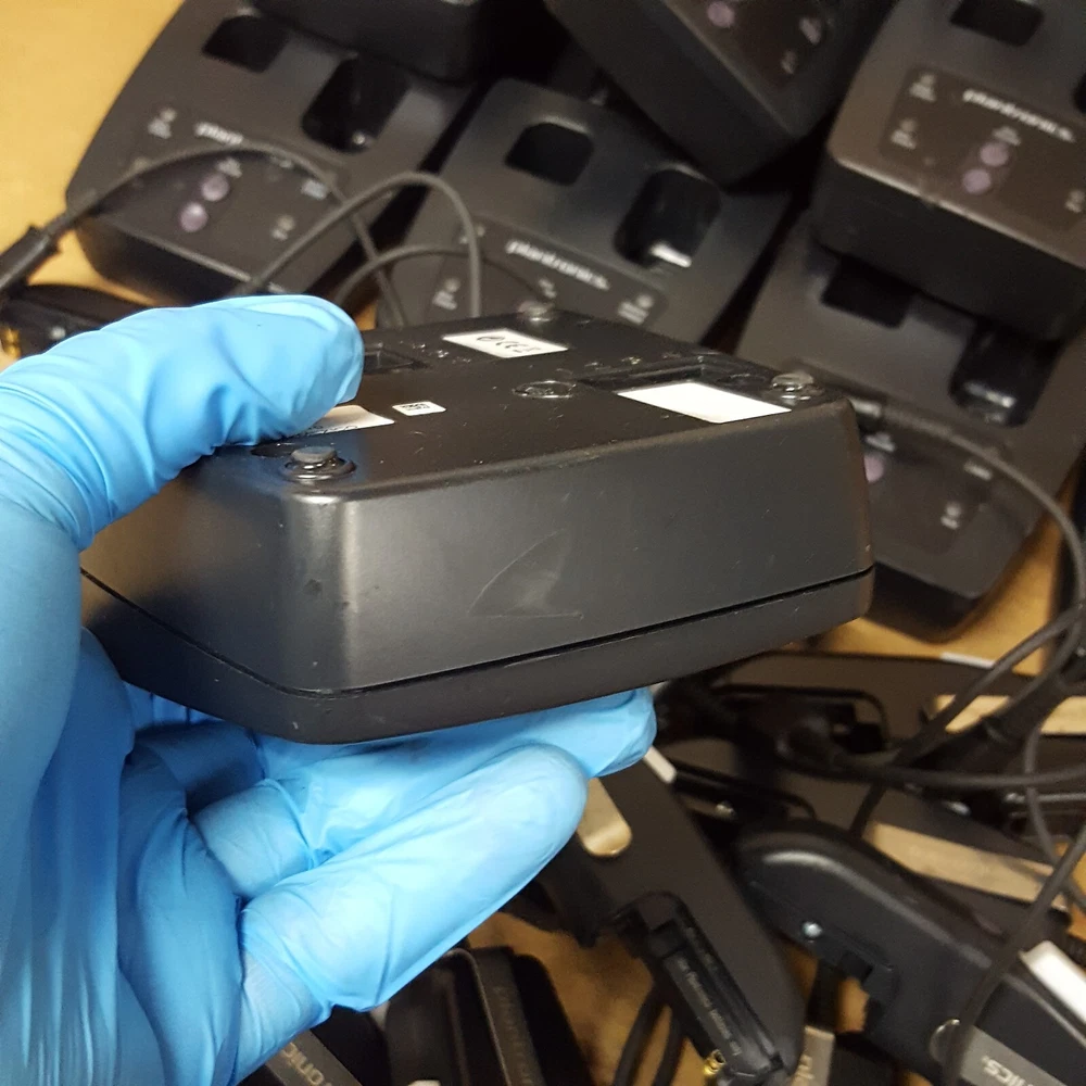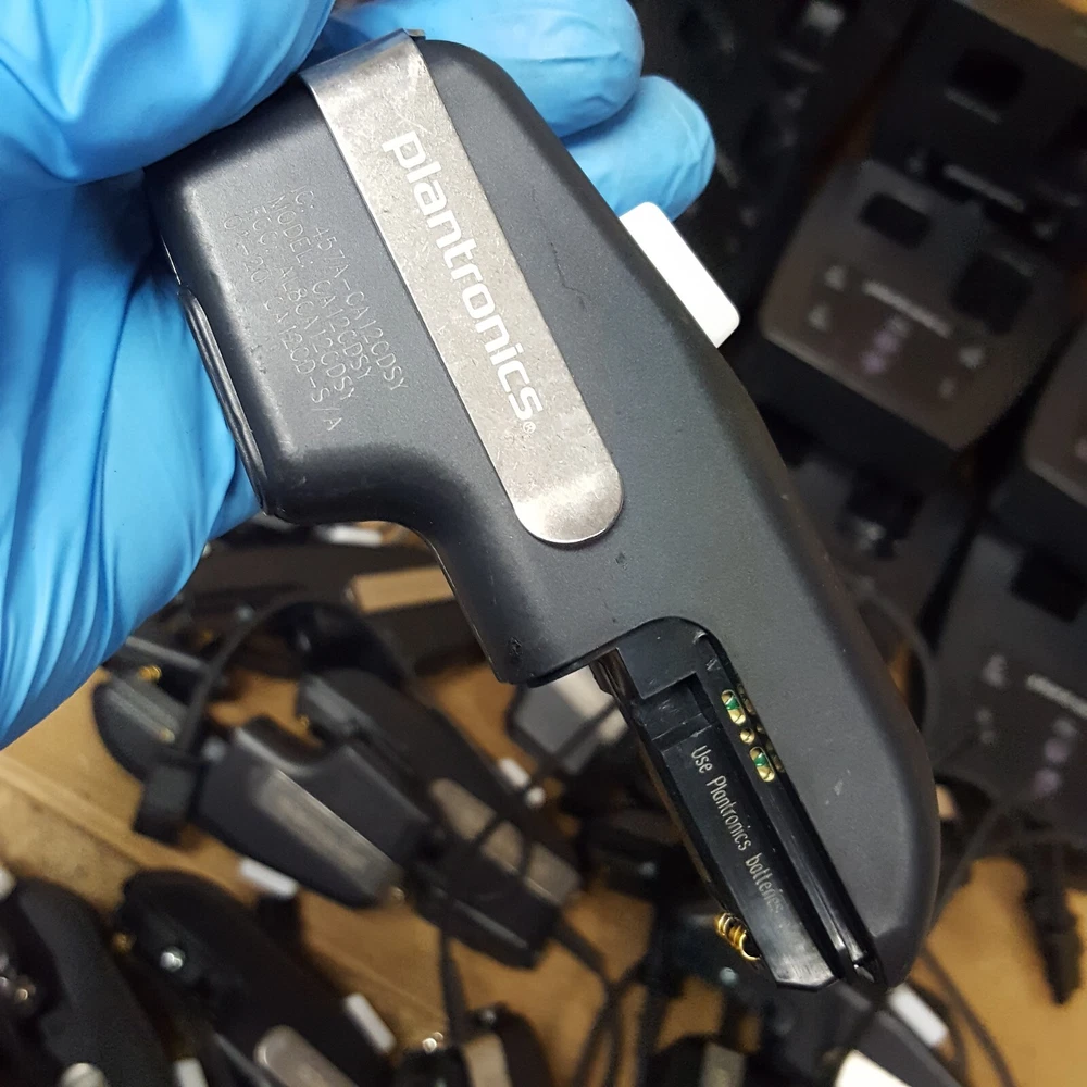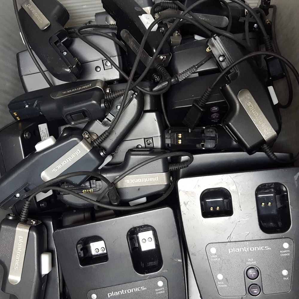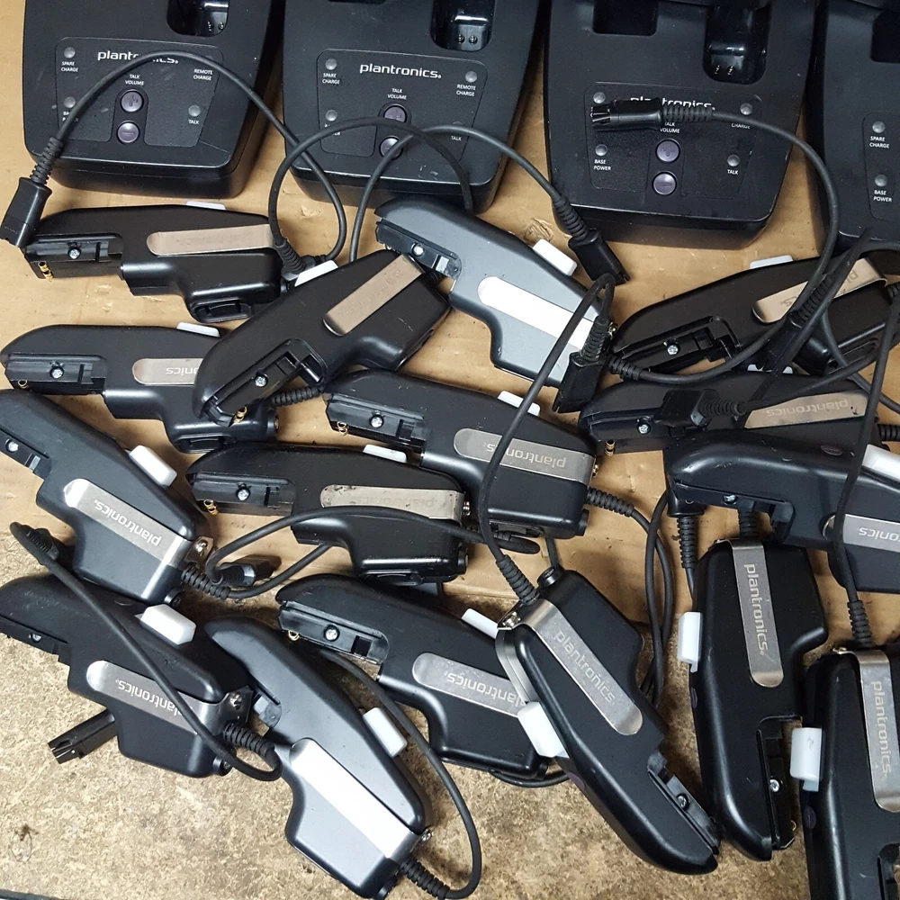 Power Cord (For Charging Base) NOT Included Battery (For Remote) NOT Included Includes: (16) Plantronics CA12CDSY Remotes (16) Plantronics Charging Bases SHS 2905-01 Removed From A Working Environment The unit has some signs of wear and normal use. (Scuffs-Scratches-Digs-Markings) Powers ON. NOT thoroughly TESTED. Product Guide and other accessories not included. We cannot offer technical support on any of our products. All units are sold without manufacture warranty information. Includes Only Parts Displayed In Pictures (Refer to pictures provided) Sold as pictured Returns Accepted Any questions please contact seller via seller contact link/tab. Thank You.