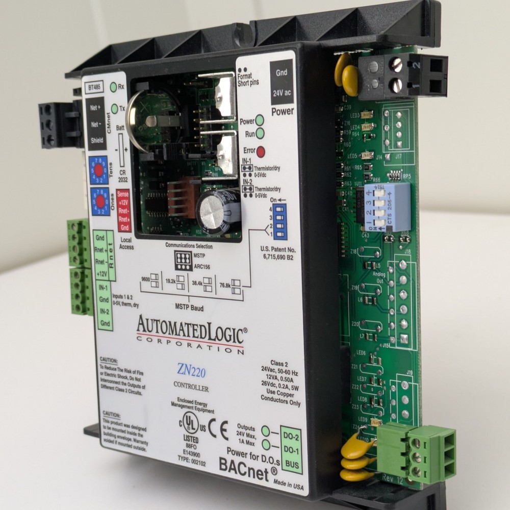 Automated Logic ZN220 BACnet Zone Controller. Unit is used and in excellent condition. Item was operational at time of removal. Manufacturer's Description: The ZN220 is a fully programmable, native BACnet Advanced Application Controller designed for controlling a single zone in a building. It communicates on an EIA-485 LAN using BACnet MS/TP communications and connects seamlessly to the WebCTRL® building automation system.