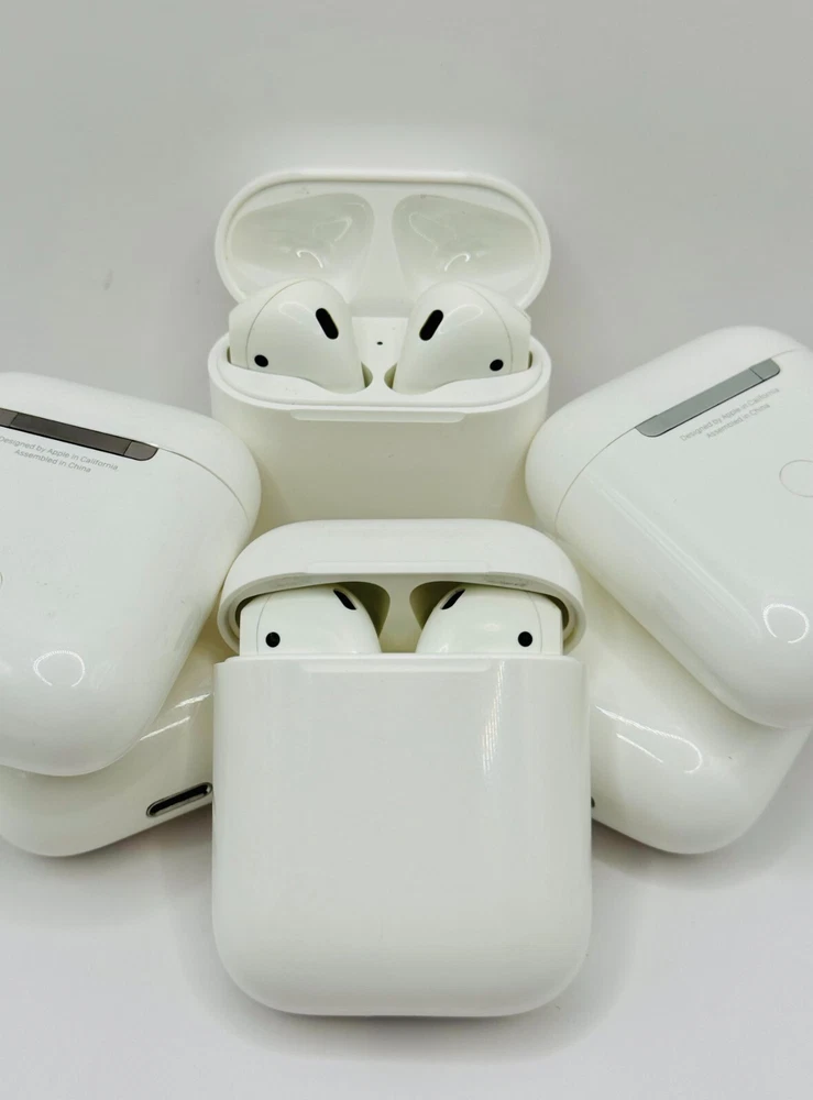 Lot of 20 Authentic Apple AirPods 1st Gen with Charging Cases & Cables - Tested & Working. These are a mix of 1st Generation A1523s and A2031s, some with the wireless charging cases. All AirPods are working & tested and in working condition (please note these are used AirPods and come with visible signs of use including dirt, scuffs, stains and scratches)