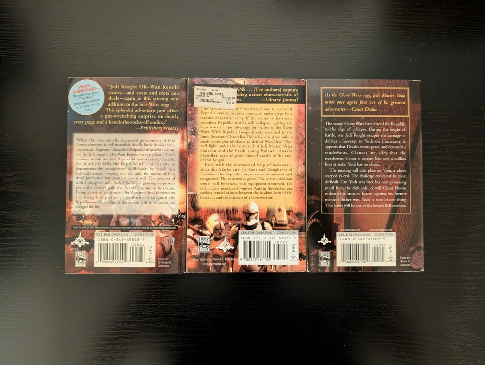 This lot contains the Cestus Deception, Jedi Trial and Yoda Dark Rendezvous (First Edition).