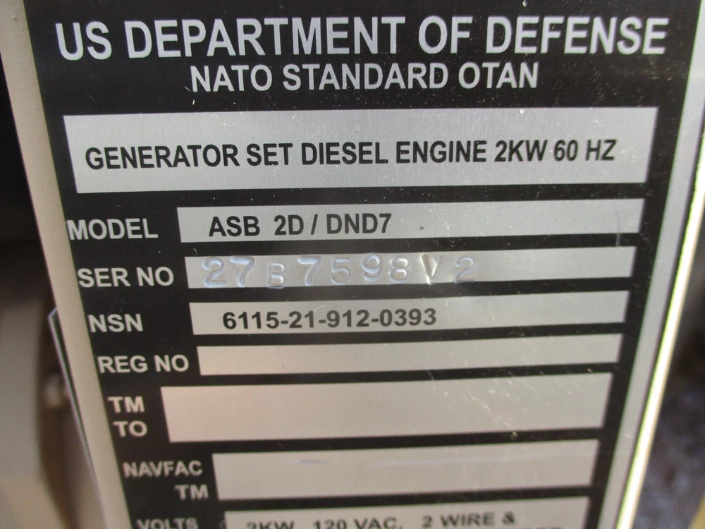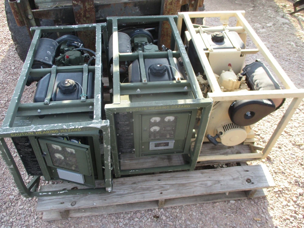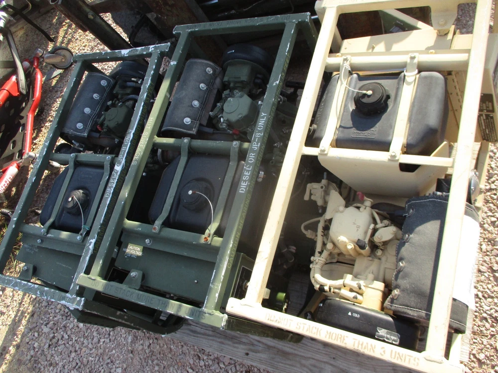 3 used 2kw generators, all w/Low Hours, all need hoses and drain plugs, and misc vibration isolators, small stuff. The Main units are good, but all will need minor repair. One has the frame bent pretty good but gen is not damaged significantly. I will palletize for free but customer pays all freight costs. AS-IS. O UTSIDE USA SHIPPING - I dont ship outside the USA so dont even ask. NON-USA Registered Buyers - Dont accept bids from non-USA registered buyers so dont even ask-no exceptions.