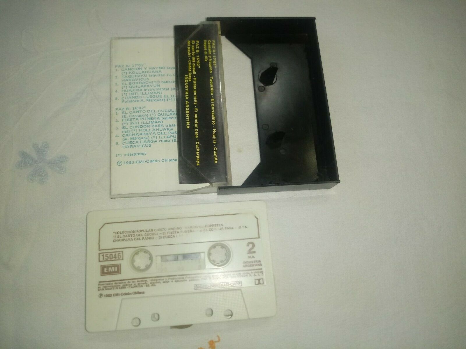 Includes the following tapes: -Canto Andino (compilation of groups such as Quilapayun and Illapu, among others), edited by EMI-ODEON de Chile, in 1983. -Huairamapu (argentine andean group), independently published. -Mashua (chilean andean group), independently published. The cassettes are working properly as they have undergone a cleaning and restoration process. They have been tested on a deck player. * The shipping cost is for North America and Europe, if you are from Latin America or the rest of the world, please inquire about shipping, which will be reformulated according to your region. *El costo del envío es para América del Norte y Europa,si usted es de América Latina o el resto del mundo, por favor, consultar por el envío, qué será reformulado de acuerdo a su región.