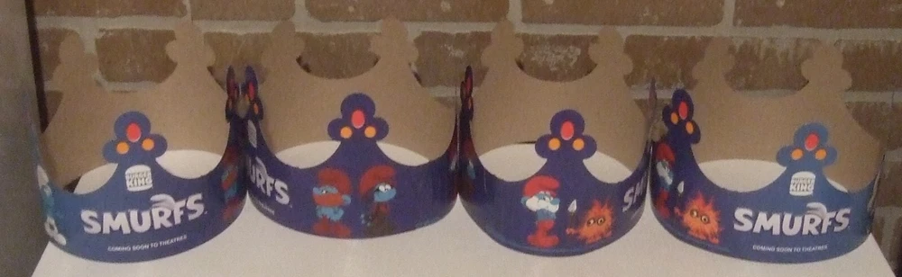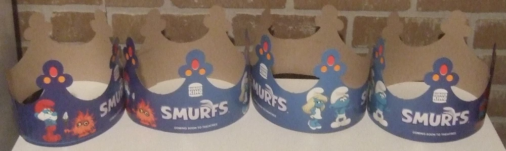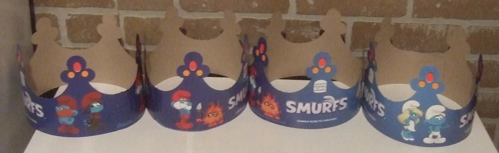 Four Burger King crowns. Special edition to promote the 2025 movie “Smurfs”. All in excellent condition.