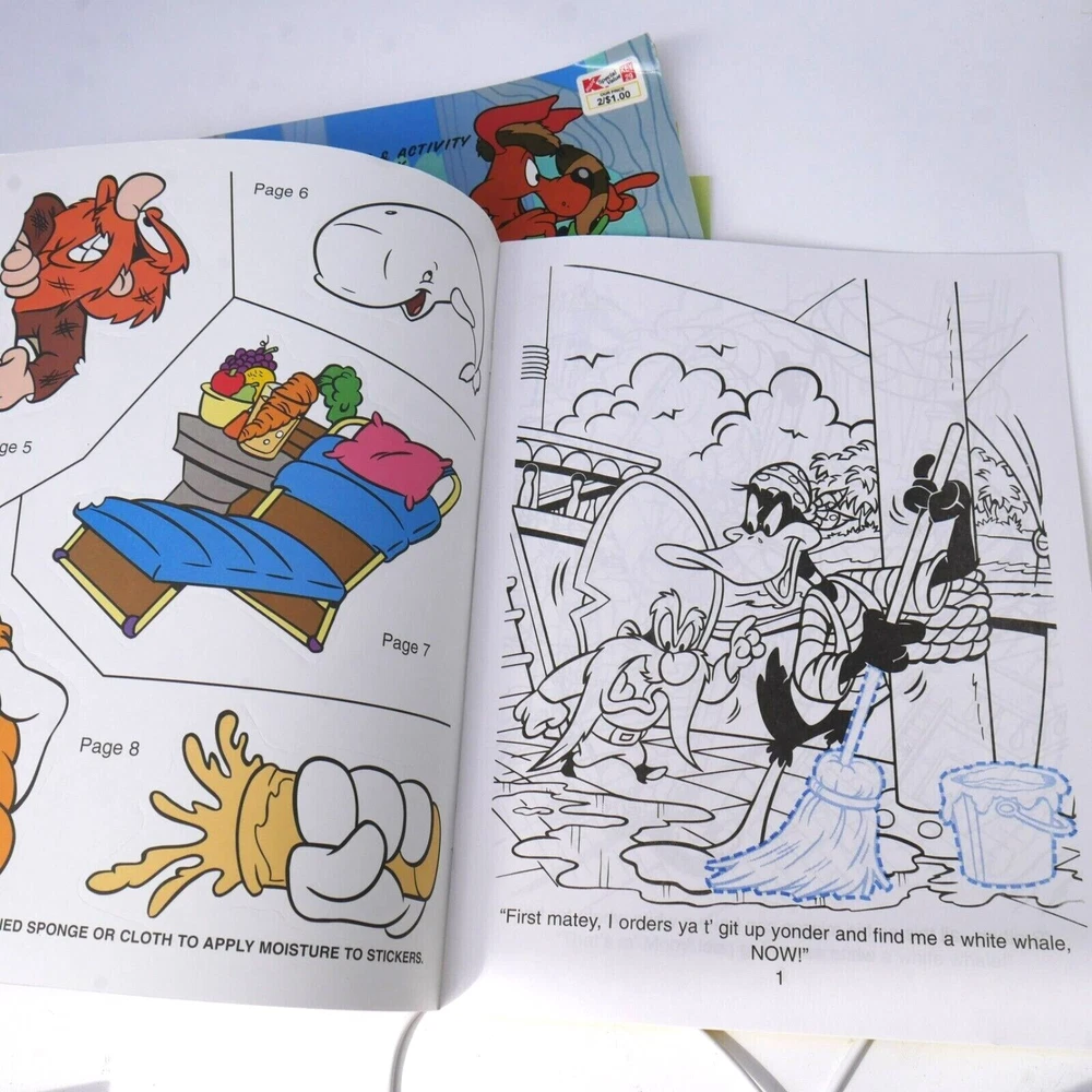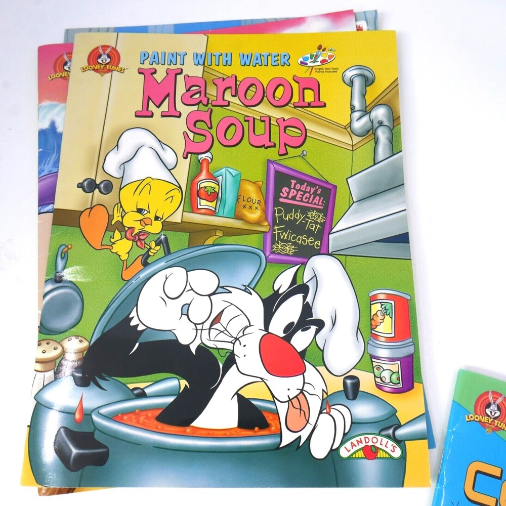 Lot of 4 Vintage Landoll's Looney Tunes Books *Paint w/ water Maroon Soup *Paint w/ Water REMOTE CONTROLLED *Sticker Book MOBY DUCK *Coloring & Activity Book LEWIS & BARK All are new/ unused but may light shelfwear