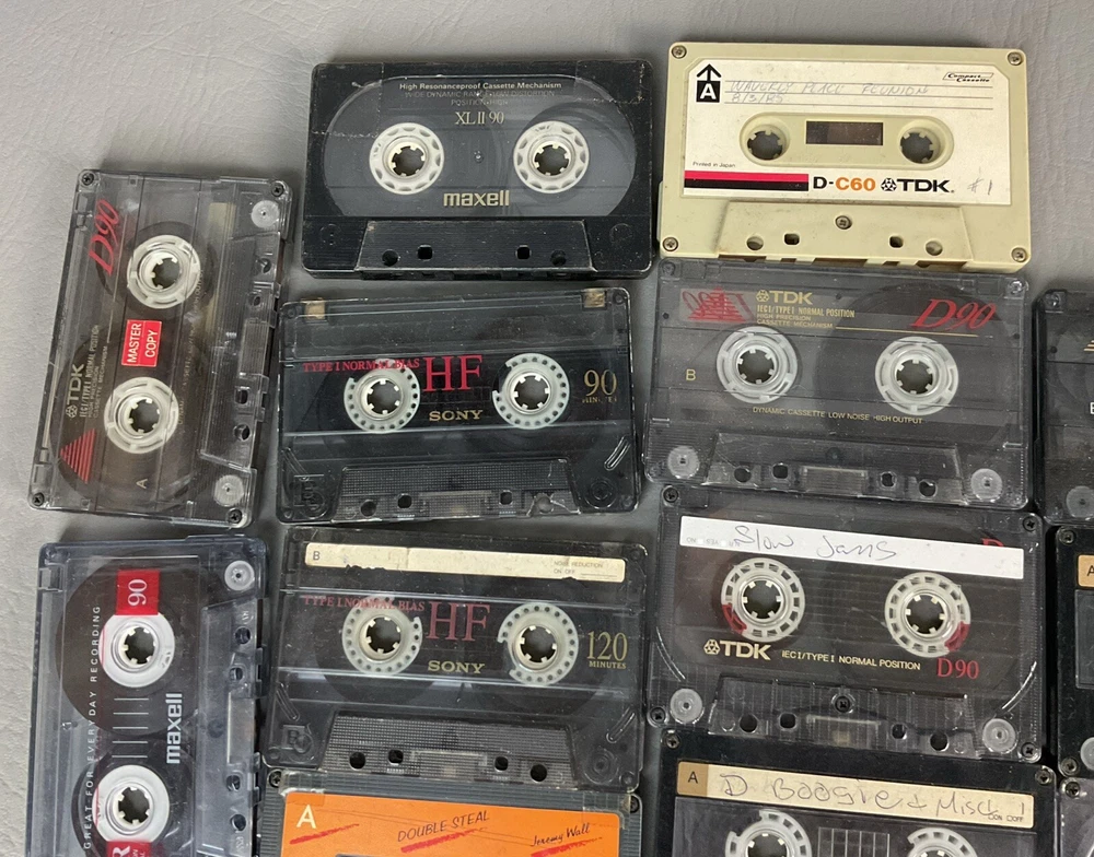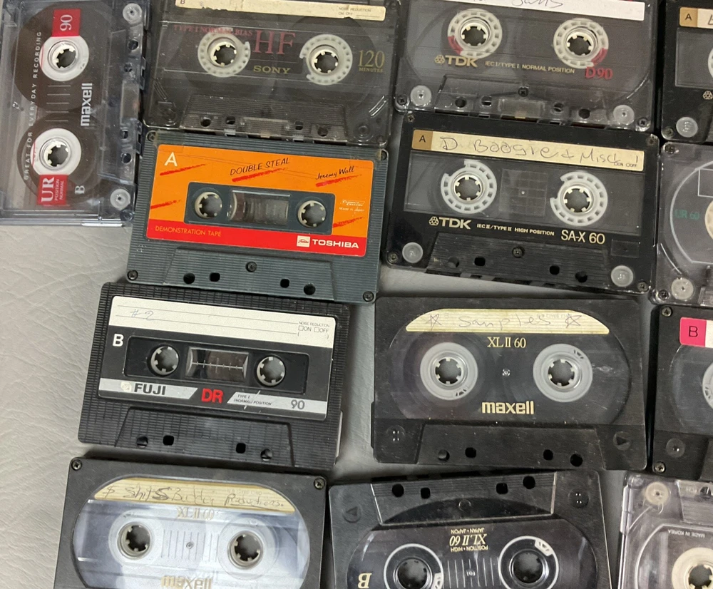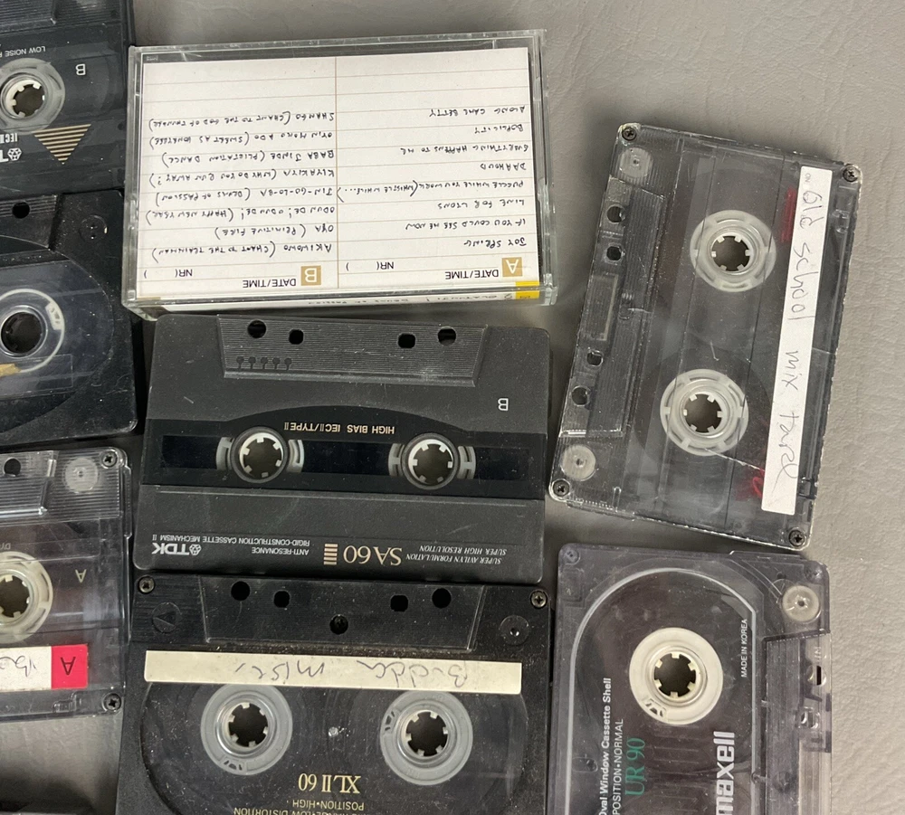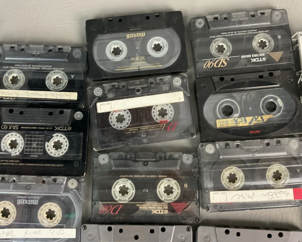 The product is a lot of 42 previously recorded audio cassette tapes, most of which do not have cases. The tapes intended for re-recording, and are in cassette format. They are suitable for recording using a recorder.