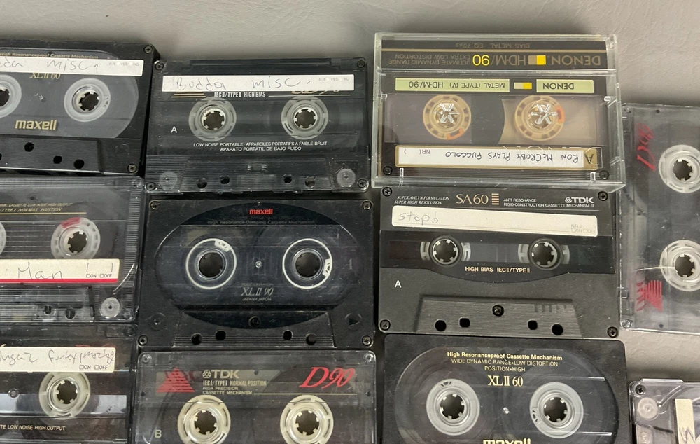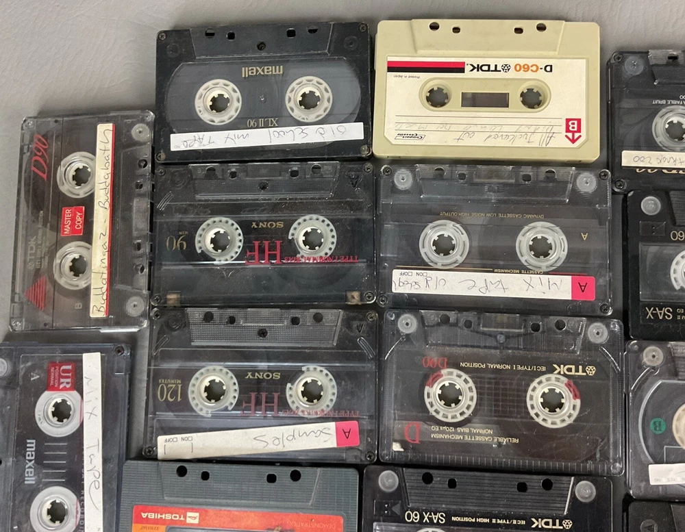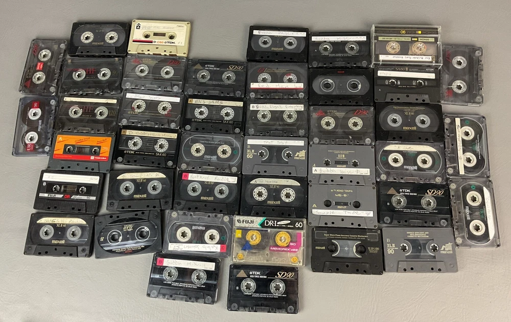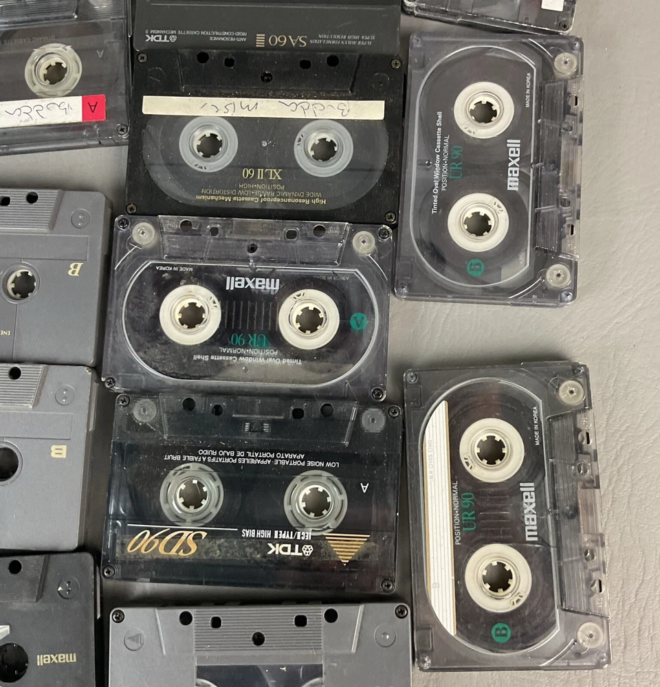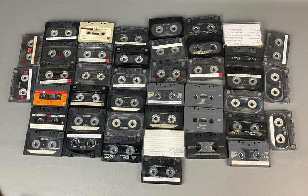 The product is a lot of 42 previously recorded audio cassette tapes, most of which do not have cases. The tapes intended for re-recording, and are in cassette format. They are suitable for recording using a recorder.
