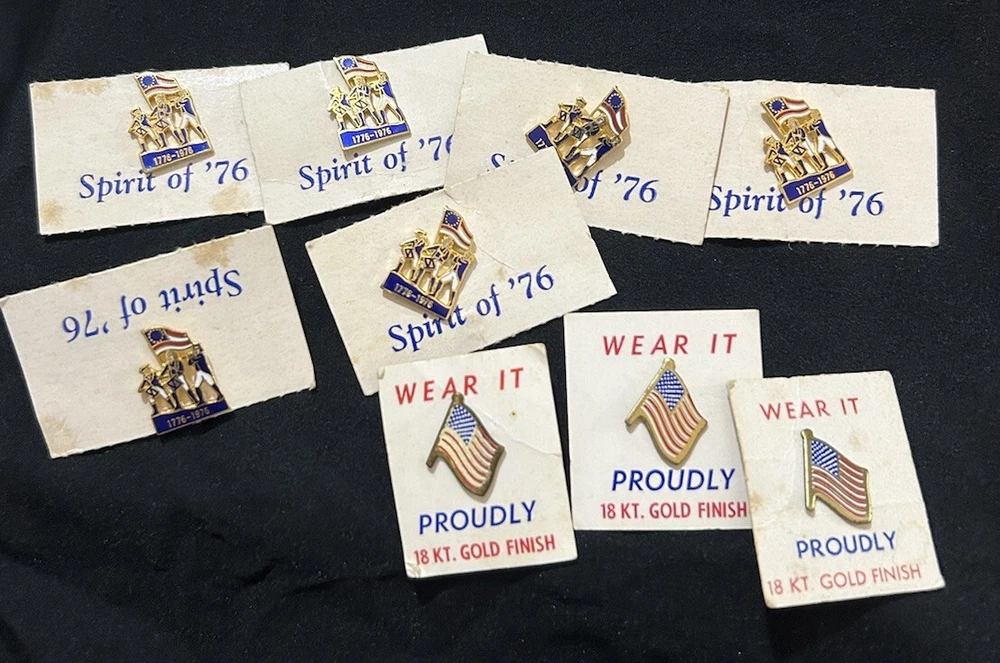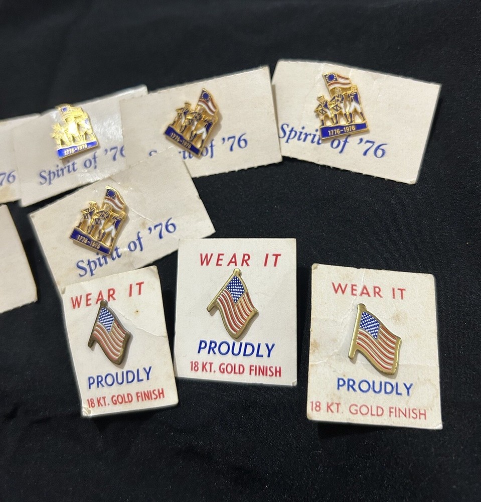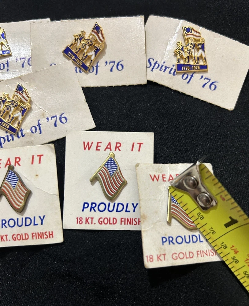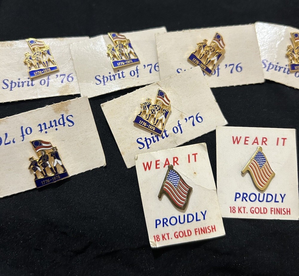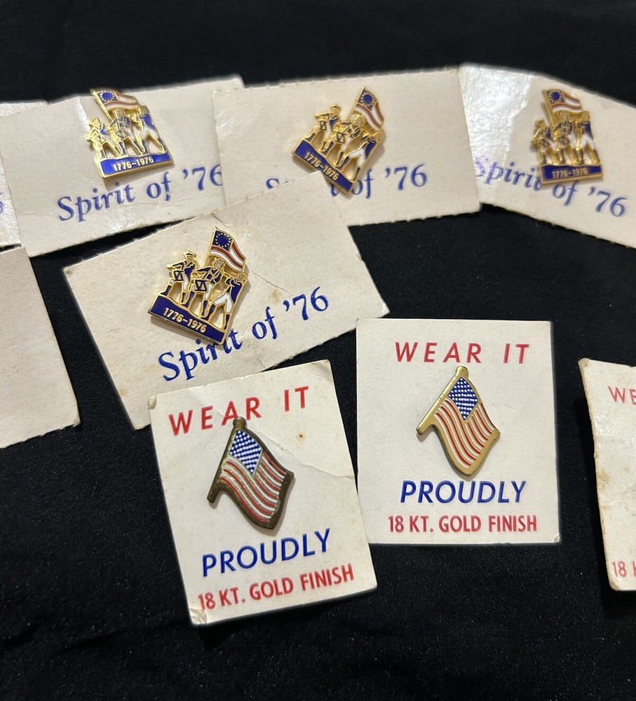 Lot Of 9 Vtg Spirit Of 76’ & USA Flag Music Orchestra Pins 18K Gold Finnish Measurements in the pictures Good vintage condition. Normal signs of wear and tear. Minor scuffs and scratches. Please study pictures carefully before purchasing Feel free to ask any questions. Thank you for visiting our store! 11a S