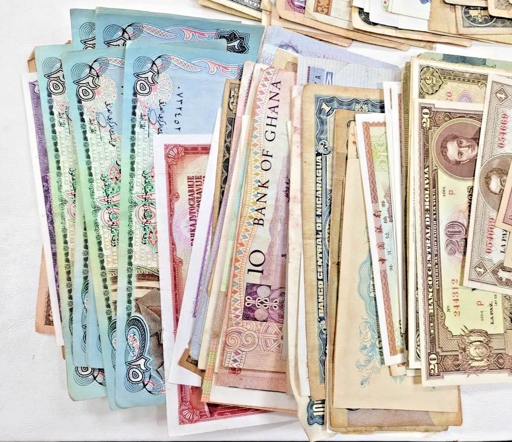 Lot of Old Foreign Banknotes World Paper Money Currency 190+ Photos show your Foreign Banknotes This lot features a collection of old foreign banknotes, perfect for any collector or enthusiast of world paper money. The banknotes are circulated and ungraded, adding to their unique character and history. The collection includes banknotes from different years and countries, making it a diverse and interesting lot for any collector. The banknotes are uncertified, but their value and historical significance are undeniable. Whether you are a seasoned collector or just starting out, this lot is a must-have for anyone interested in world paper money.