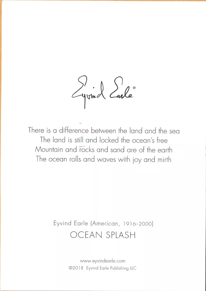 Up for grabs are two (2) beautiful images from artist Eyvind Earle titled "Fog Mist" and "Ocean Splash". The images are on blank note cards (light card stock) as shown in the additional images. Each card comes with a white envelope. Each card is approximately 4.5" x 6.5". A great opportunity to have an Eyvind Earle image framed at a very low cost This item qualifies for a Discounted Combined Shipping Rate I offer combined shipping discounts! If you want to purchase multiple items: 1. Please add each item to your shopping cart. 2. Once you have added all of you items, proceed to eBay Checkout. 3. eBay Checkout will automatically combined all of the items and calculate the shipping discount. 4. Make only one payment