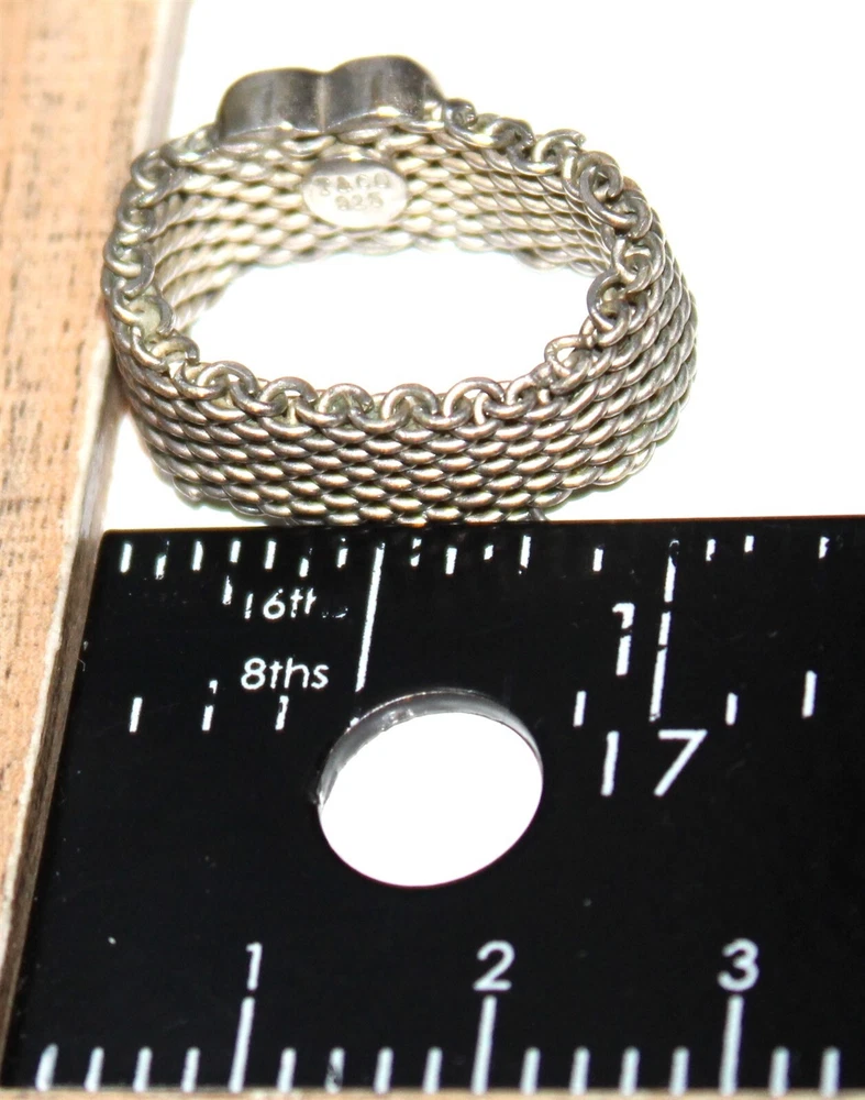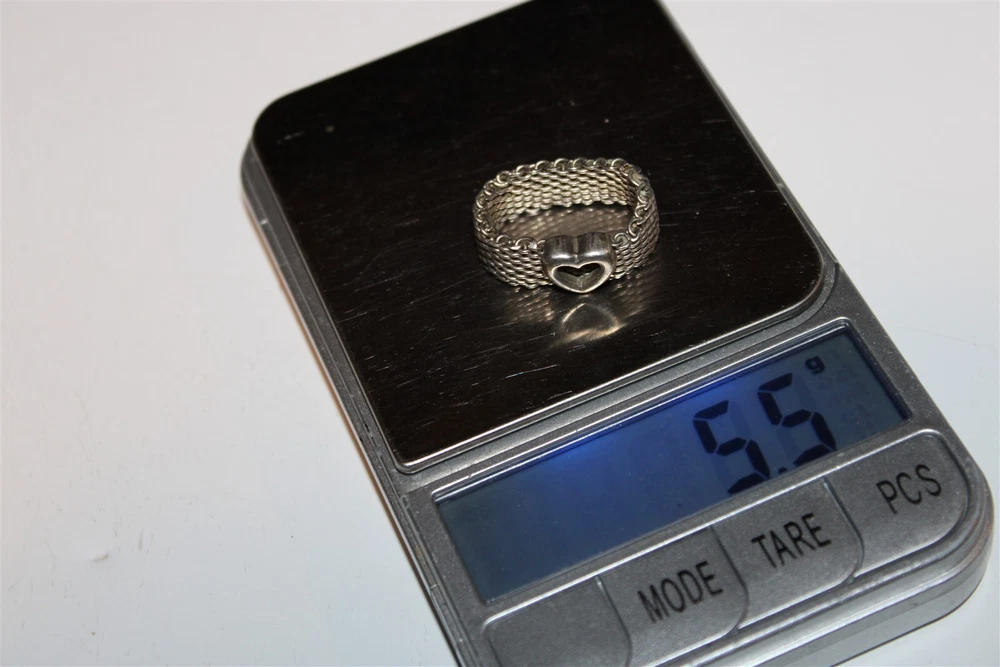 Lot#3 TIFFANY & CO 925 sterling silver signed size 7 mesh ring with heart