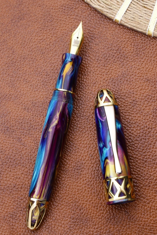 Royale Fountain Pen Description:- Royale "Shikhar" is a Sanskrit word that translates to "peak" or "summit" in English. It is commonly used in several Indian languages, including Hindi and Nepali. The term symbolizes the topmost point of a mountain or any elevated structure. Royale is Virtuous and fair, Royal and Gracious. The Crown on the top of the pen gives the glory to the pen. Royale is an extension to our bestseller Lotus Shikhar. Giving optimum performance and fast, smooth writing, the pen is royal to look at and gracious to pen with. The make is similar to Lotus Shikhar with hand carved ring, with the top and bottom finial. Large well-balanced pen. It writes effortlessly with glorious strokes and less pressure. It is surely a luxurious and expressive writing experience. Royale is an elevated fountain pen experience. Owning a high-quality fountain pen can be a symbol of prestige and taste. From everyday writing instruments to one of kind works of hand-crafted art, Royale adds luxury in your pen kingdom. Typically made in Ebonite, however our patrons have customized this state of art fountain pen in resin, Acrylic, Cellulose acetate to name a few. Accessories:- Handcrafted Wooden Gift Box. Silk Kimono. Fountain Pen Polishing Cloth. Each Pen is Hand-crafted and will take 3 to 4 weeks to dispatch. Material:- Yellow Nikko Ebonite Blue Nikko Ebonite Red Nikko Ebonite Orange Nikko Ebonite Yellow Green Nikko Ebonite Orange Ripple Nikko Ebonite Red Ripple Nikko Ebonite Green Ripple Nikko Ebonite Beige Ripplr Nikko Ebonite Deep Green Ripple Nikko Ebonite Blue Ripple Nikko Ebonite Yellow Green Nikko Ebonite Deep Green Nikko Ebonite Yellow Ripple Nikko Ebonite Conway Stewart Dartmoor Conway Stewart Blue Stardust Conway Stewart Classic Green Conway Stewart Pistachio Conway Stewart Shingle Conway Stewart Bronze Conway Stewart Azure Conway Stewart Bracket Brown Conway Stewart Cherry Red Conway Stewart Mocha Conway Stewart Honey Noire Nib Size:- Fine. Medium. Broad. Bullet Points:- CC Filler Mechanism: Smooth and efficient ink filling for uninterrupted writing. Jowo German Nib: Precision-engineered nib for a smooth, effortless writing experience. Royale Design: Elegant and sophisticated design for a luxurious look and feel. Comfortable Grip: Ergonomically designed for long, comfortable writing sessions. Durable Construction: High-quality materials ensure long-lasting performance and durability. PAYMENT I accept Payoneer. COUNTRY : Shipping Worldwide from India TYPE : Standard Int'l Free Shipping