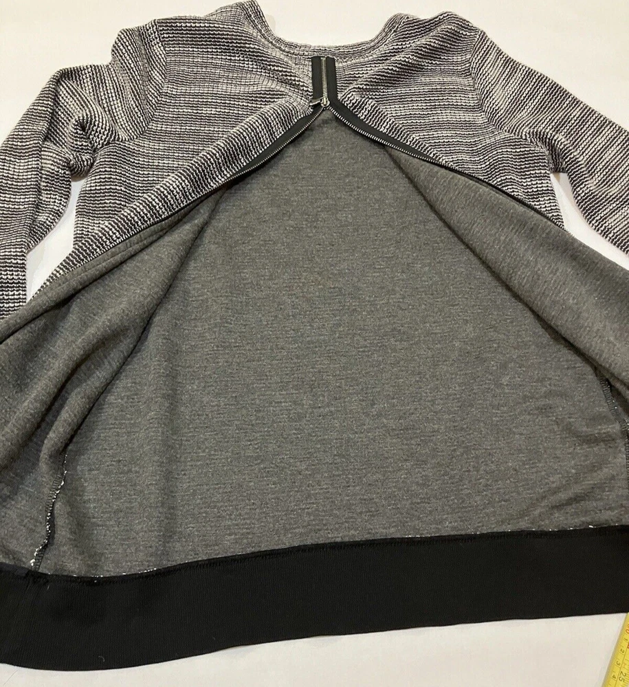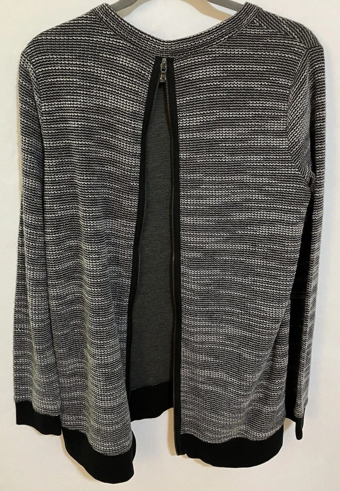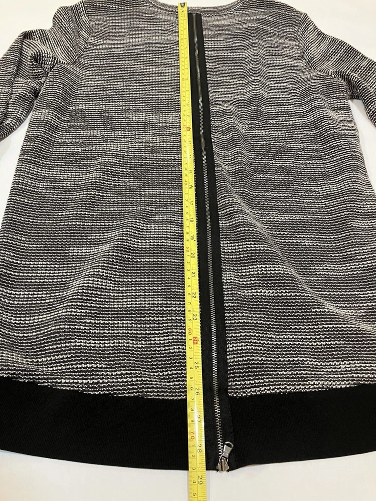Lou & Grey Contrast Grey Static with Black Back Zip Long Sleeve Sweater M Contrast black wrists and waist line Contrast back full back zipper 38% polyester / 24% cotton / 19% rayon / 14% acrylic / 5% wool Made in Phillipines machine wash cold gentle cycle only non chlorine bleach when needed line dry cool iron if needed lightly used but wholly loved!-- Please see photos for measurements and condition details. Feel free to ask any questions or for more pictures if needed! **be sure to check out my other clothing listings for similar styles and sizes! pre owned items may show normal signs of use-- if see any stains, rips, etc., I will do my best to provide photos. do not hesitate to ask for more information if needed and feel free to combine orders to save on shipping!