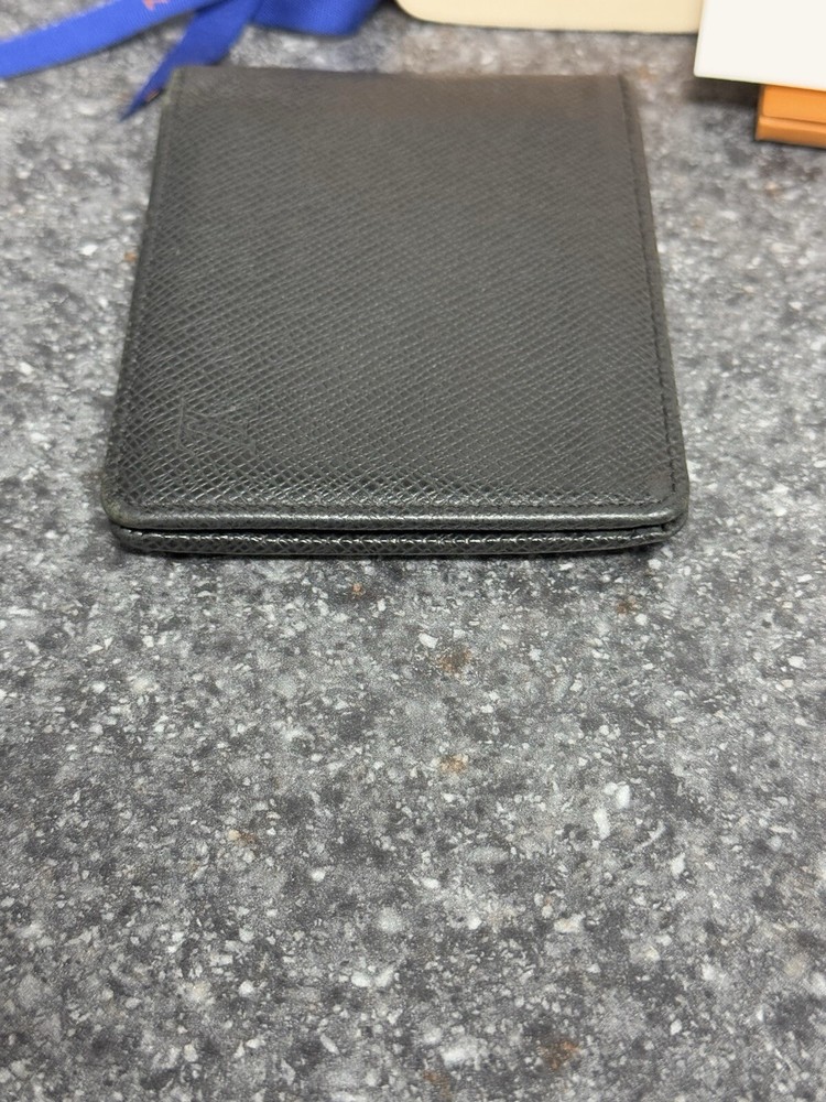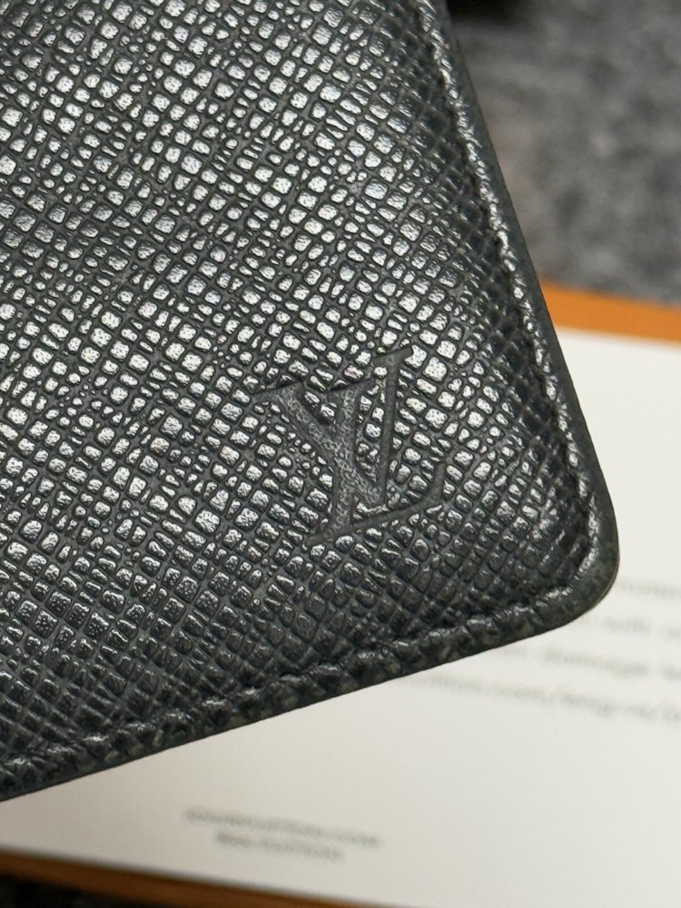 Louis Vuitton Portefeuille Black Taiga Leather Multiple Men’s Bifold Wallet This louis vuitton black multiple men’s bifold wallet is in good preowned condition! The wallet features five card slots, two pockets, and two bill slots. Very spacious! The wallet comes with its box, dust bag, ribbon, gift tag, “thank you for shopping with louis vuitton” paper, and the receipt holder. Full inclusion!!! Model Number: M30531 This wallet is still on the lv website currently selling for $630. Date Code: CT2029 Will ship the next day via usps! Please let me know if you have any questions or offers! The wallet had initials inside beside the lv heat stamp that have been rubbed out and also the wallet has some color loss on the corners from usage.