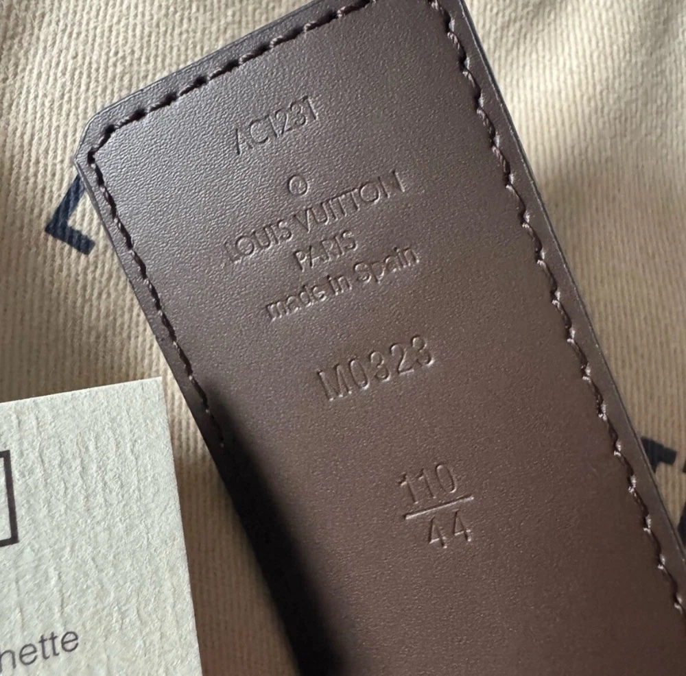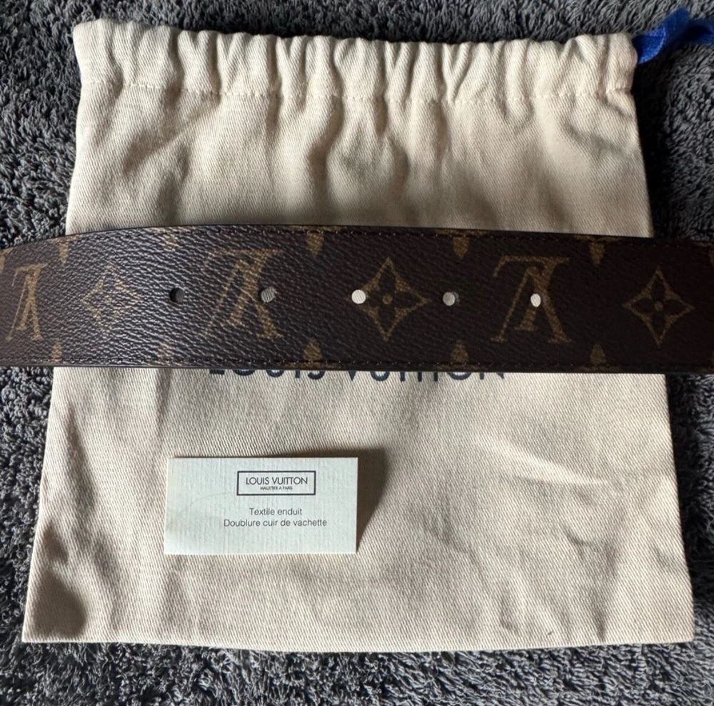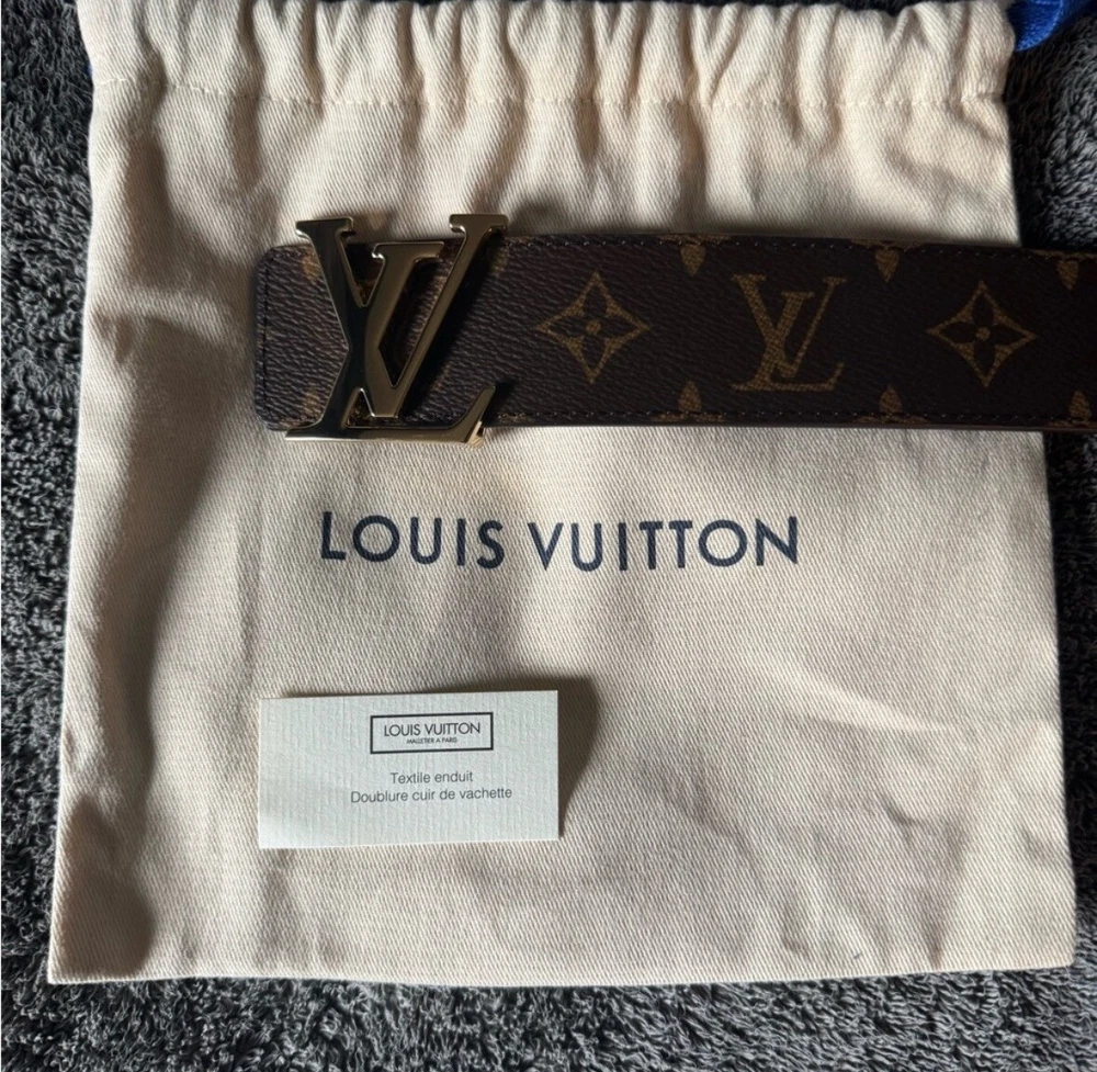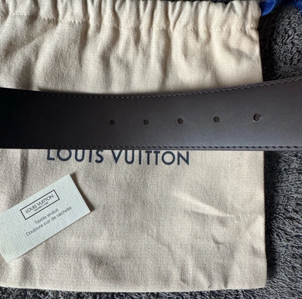 Authentic LV 40mm, size 44 belt. No sign of wear on the buckle or the sizing holes. Thank you for checking this out and please feel free to ask anymore questions. The Louis Vuitton Monogram Initials 40mm Reversible Belt is a stylish accessory for men featuring a monogram print on brown leather. The belt is 40mm wide, size 40 / 110cm, with gold color hardware accents on the buckle. It is designed with the signature Louis Vuitton monogram pattern, adding a touch of designer luxury to any outfit. Additionally, this belt offers a reversible feature, making it versatile and adjustable for various looks. Crafted in France, this accessory exudes sophistication and elegance for the modern man.