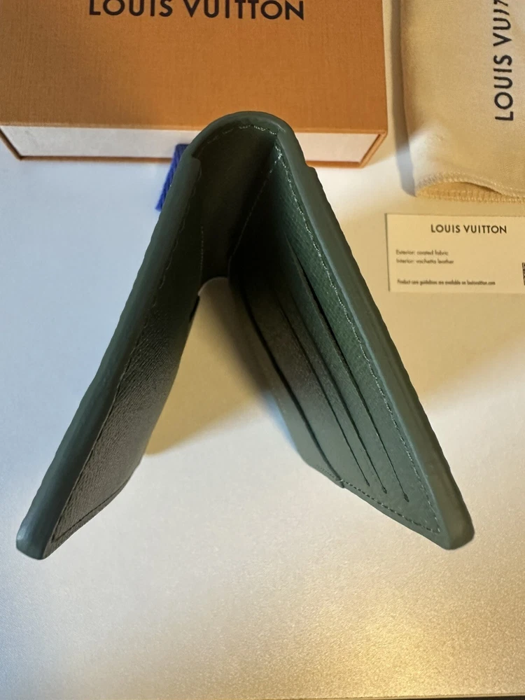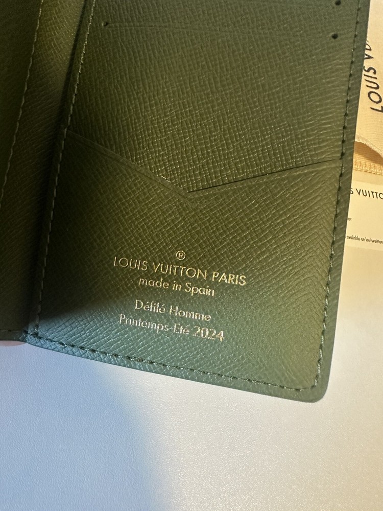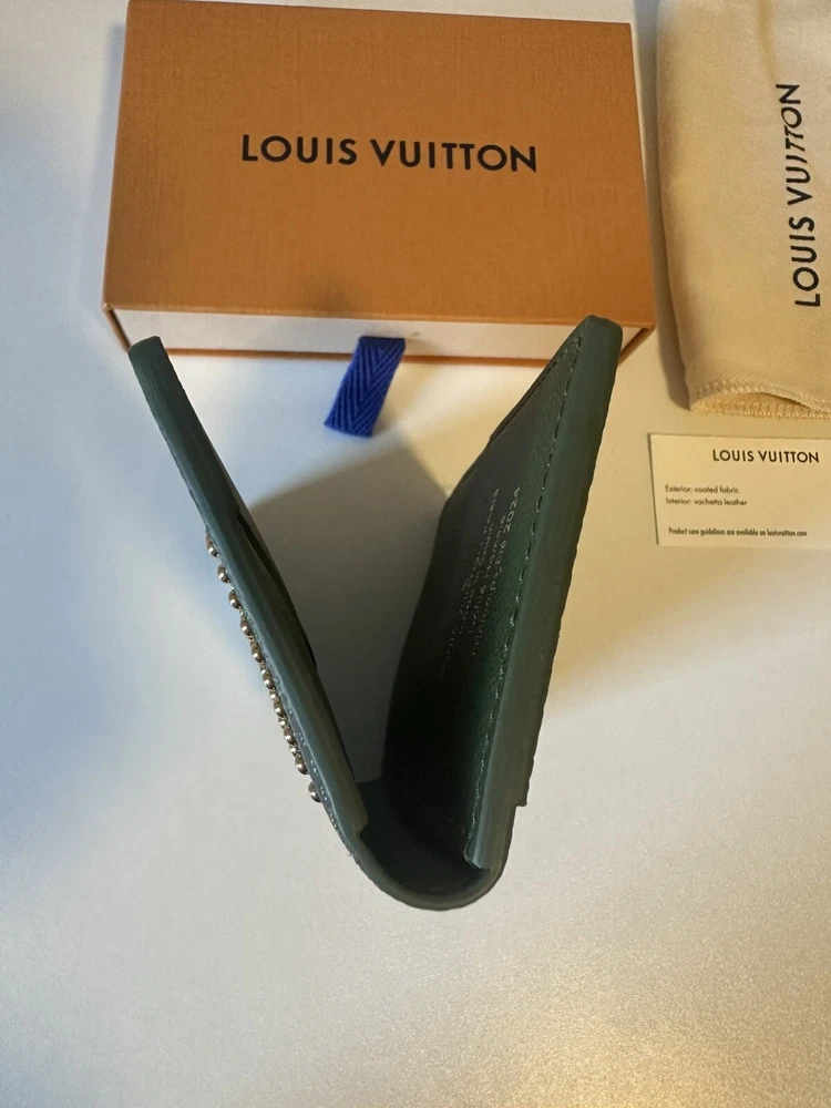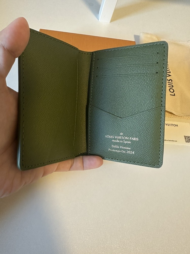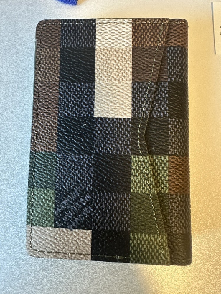 Pocket Organizer made from Damoflage coated canvas by creative director Pharrell William's reinvention of the house's damier checkerboard, blending it with camoflouge. It has three card slots, five small pockets, an outside flat pocket and slips easily into most pockets. Brand new without tags and never used, comes with original dust bag and box (sorry no original receipt).