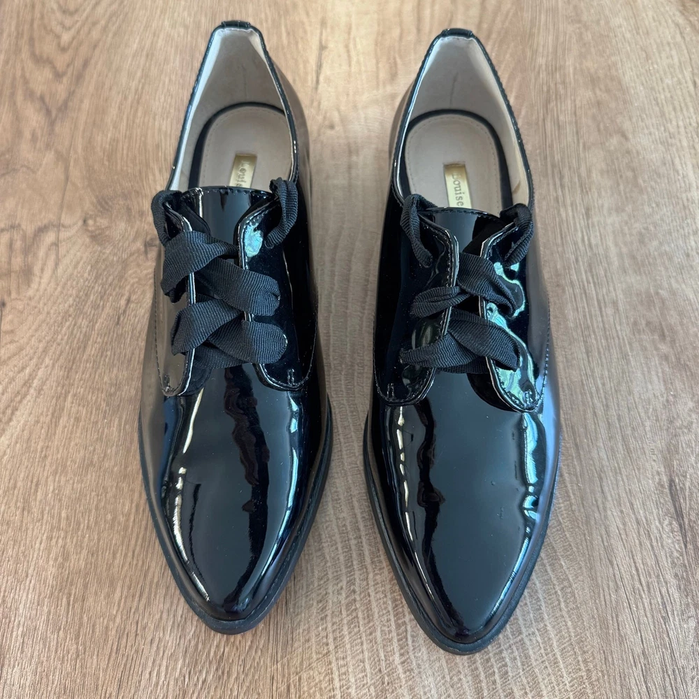 Louise et Cie Adwin Black Patent Oxfords | Women’s Size 6.5 Brand: Louise et Cie Shoe: Oxfords Size: Women’s 6.5 U.S. Color: Black Material: leather upper, manmade sole Toe: Almond Condition: Pre-loved in excellent condition. Minor signs of wear. (See listing photos) Thank you and have a lovely day!