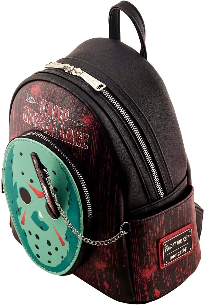 Loungefly Halloween: Friday the 13th Jason Cosplay Glow in the Dark Mini-Backpack, Amazon Exclusive Featuring incredible detail to bring Jason's Mask to life, this Loungefly mini backpack is made of vegan leather (polyurethane), has a front zipper compartment, side pockets, and adjustable back straps; Inside, the backpack continues the theme with unique, coordinating lining; The mask on the mini-backpack glows in the dark, adding that extra scary touch! Featuring incredible detail to bring Jason's Mask to life, this Loungefly mini backpack is made of vegan leather (polyurethane), has a front zipper compartment, side pockets, and adjustable back straps; Inside, the backpack continues the theme with unique, coordinating lining PERFECT GIFT IDEA - Ideal for birthdays, Valentine’s, Christmas, for a mother, mum, wife, girlfriend or others; Specially crafted for ladies and gentlemen who value style and function EXCLUSIVE AMAZON FIND - Unique design that's available only on Amazon; Stand out in any crowd with a backpack that's as unique as you We have the wallet for this back pack as well!!! Check out our other listings for combined shipping and thanks for looking! **Veteran Preference Female Owned Business**