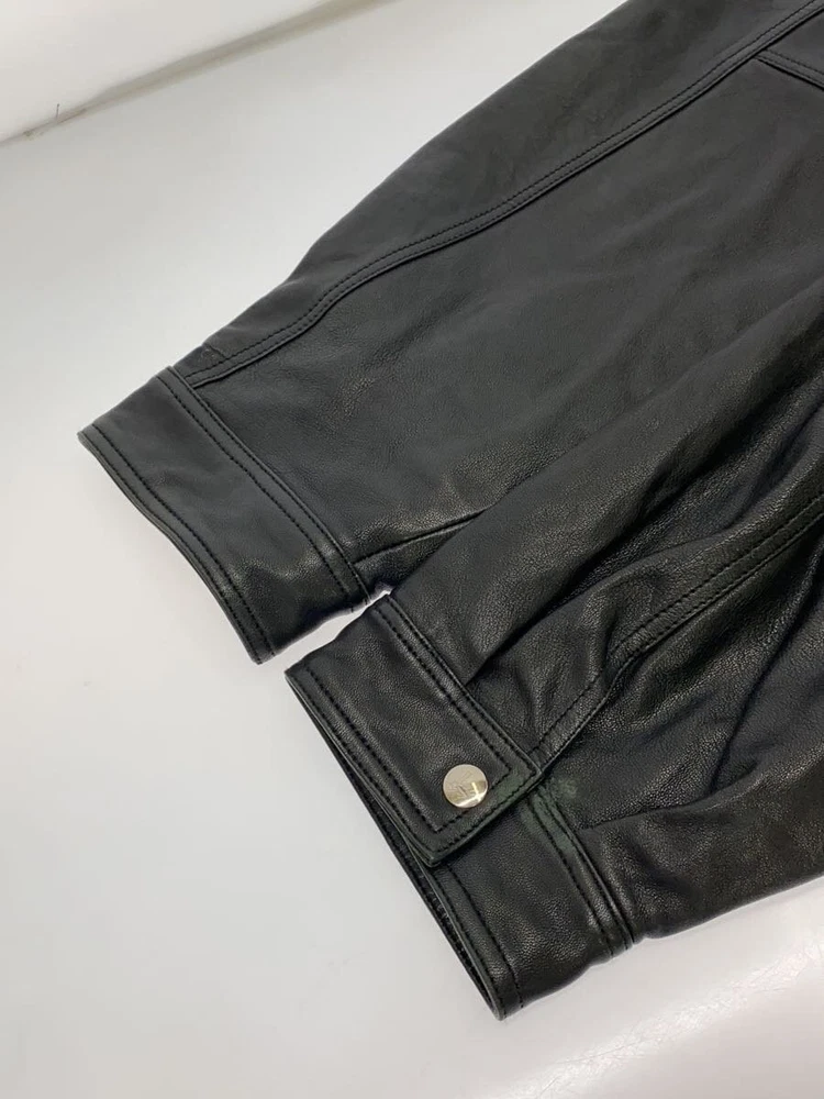 $ 215.07Men's Black Plain Leather Blouson Jacket Size 44 Style 1266