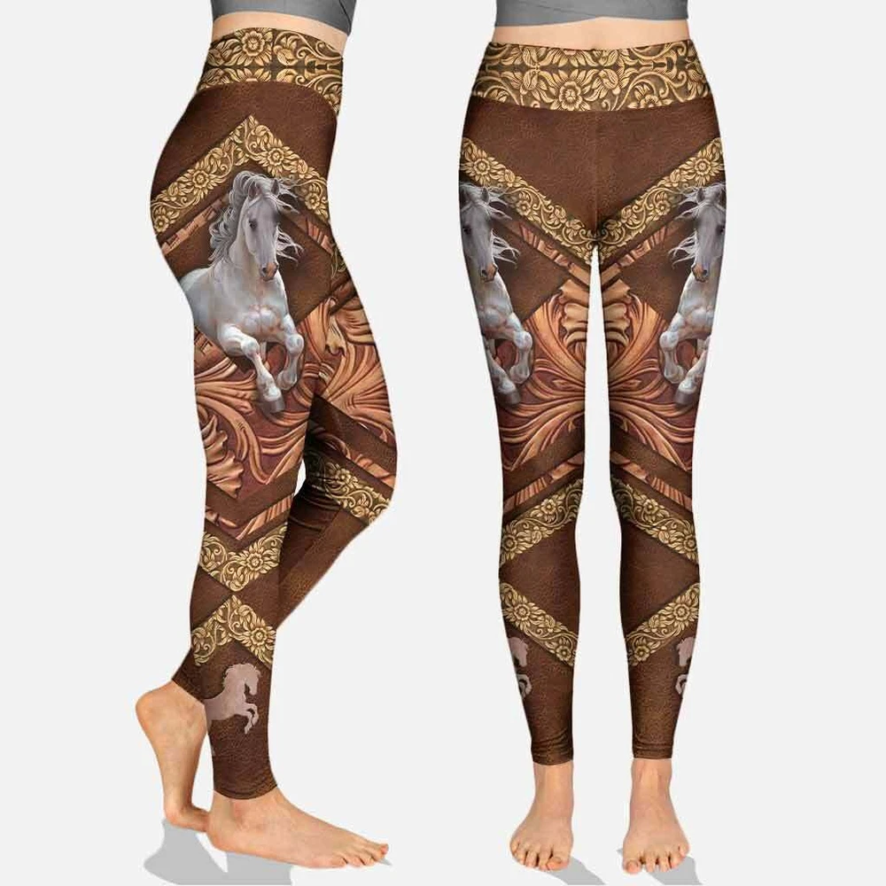 Love Horse Hoodie and Leggings With Leather Pattern Print