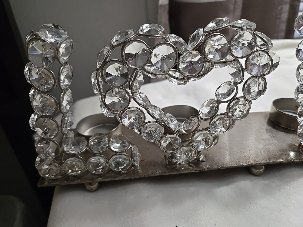 Elevate the ambiance of your living space with this exquisite votive candle holder that spells out LOVE. Designed to hold four candles, this candle holder is perfect for adding a touch of warmth and romance to any room. The elegant design and high-quality materials ensure that this candle holder will last for years to come, making it a great investment for any home decor enthusiast. Whether you're looking to create a relaxing atmosphere for a spa day at home or want to add some romance to your dinner nights, this candle holder is a must-have accessory.