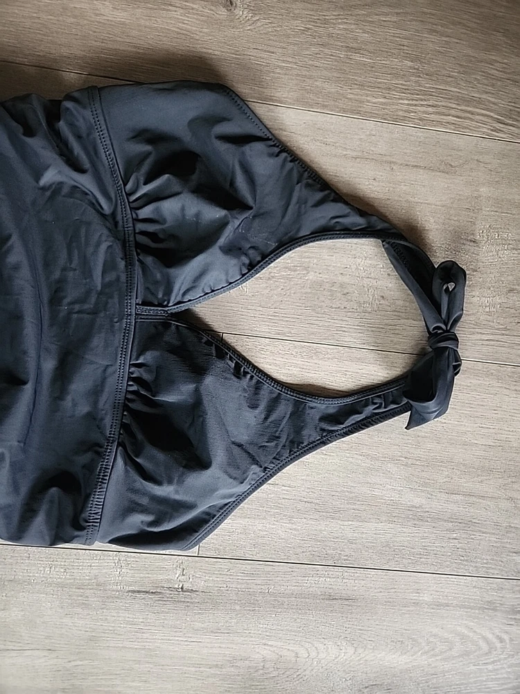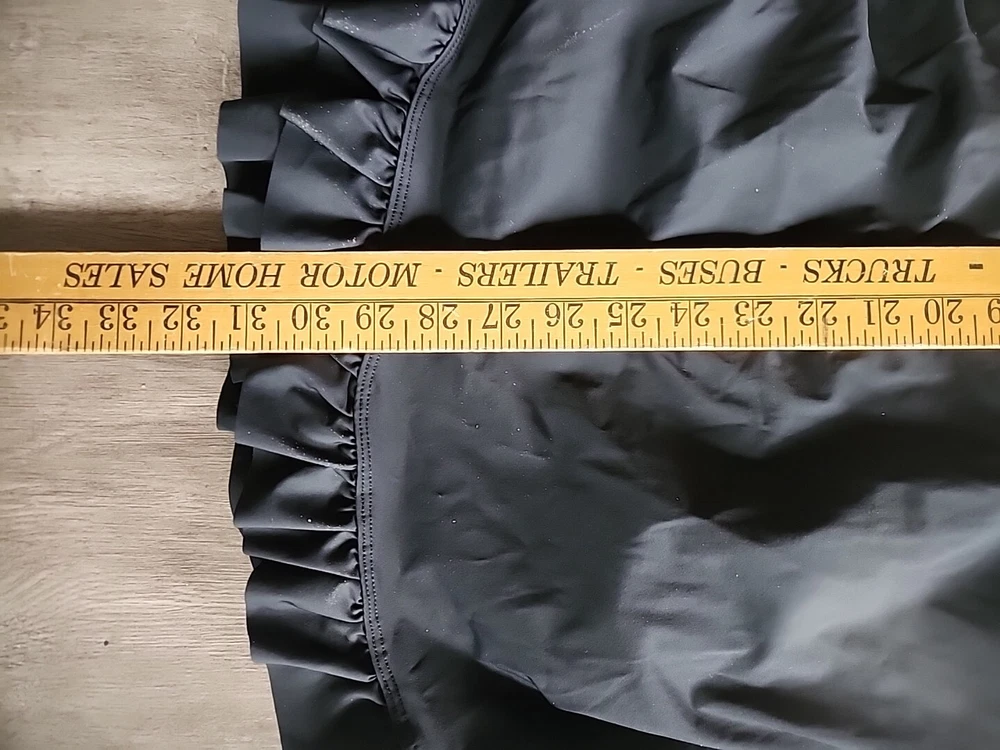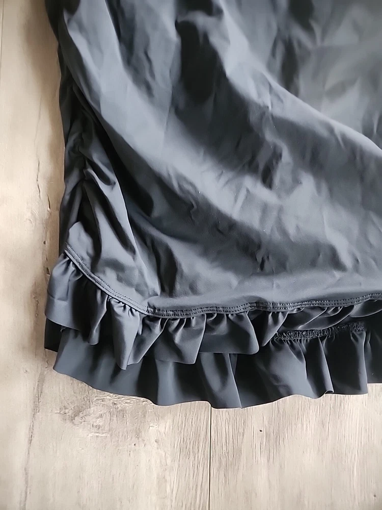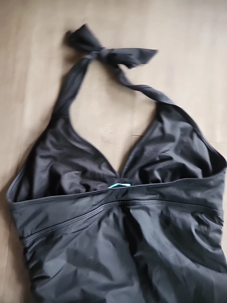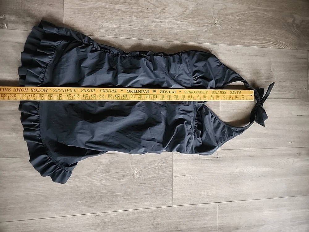 Love Your Assets Sara Blakely Spanx Halter Swim Dress Size L Black Ruffle Skirt - Lightly padded bra area with no inserts. This one piece swimsuit is in great condition Swimsuit is a one piece with a ruffle skirt overlay that makes it look like a mini dress. Perfect for those who want a bit more modesty and slimming look or a retro feel. Size large being spanx runs a little tight due to compression getting on. Great fit once on!! Very nice heavy well made quality. See all the pictures super cute.