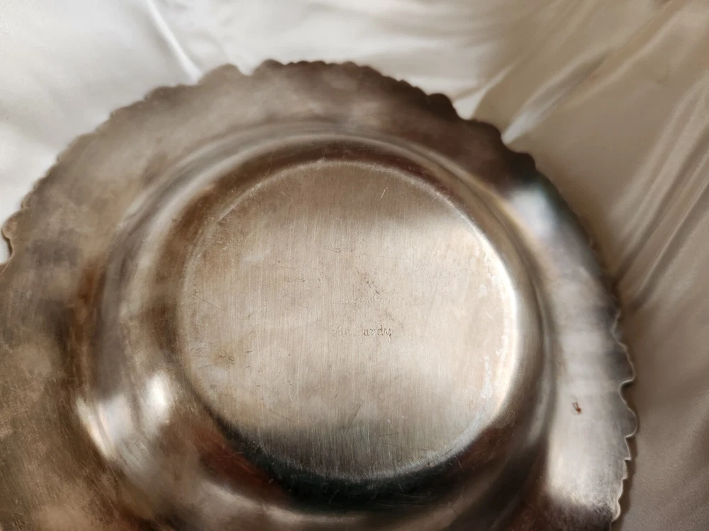 This beautiful 7-inch bowl by Reed & Barton is a stunning addition to any collection. The intricate burgundy pattern on the sterling silver (.925) composition makes it a unique and elegant piece. The bowl's age is unknown, adding to its mystery and charm. Reed & Barton manufactured in Taunton MA from 1824 until 2015. This bowl is perfect for use or display and is sure to impress.