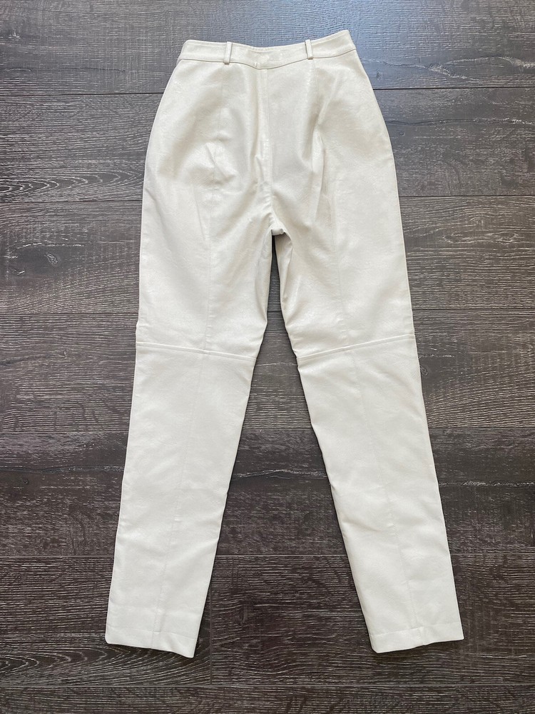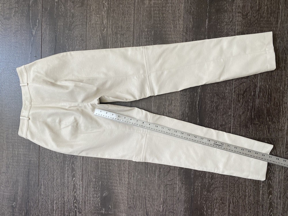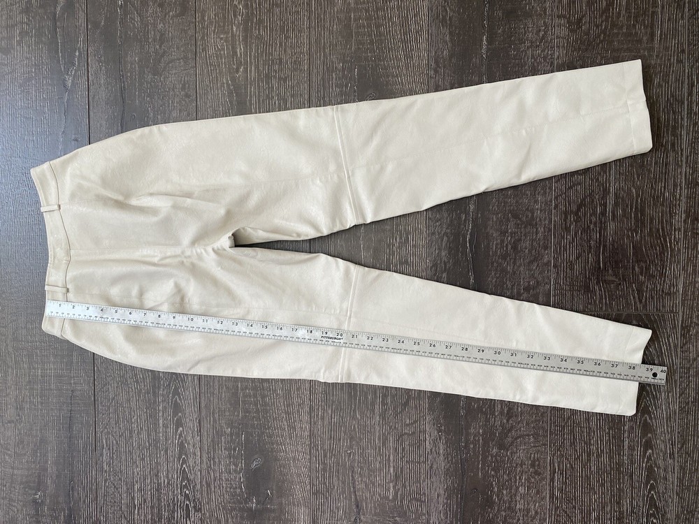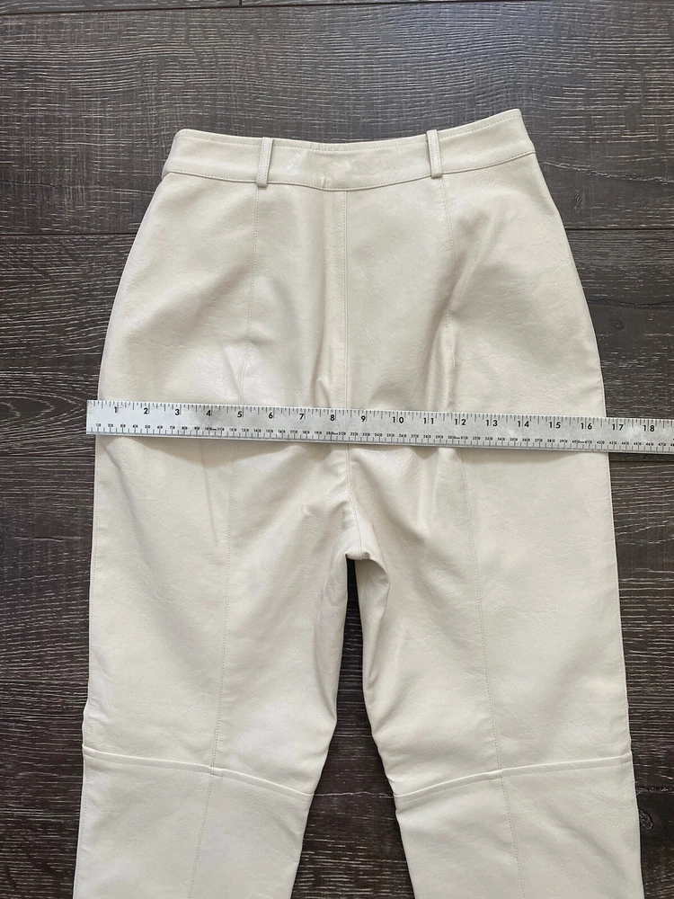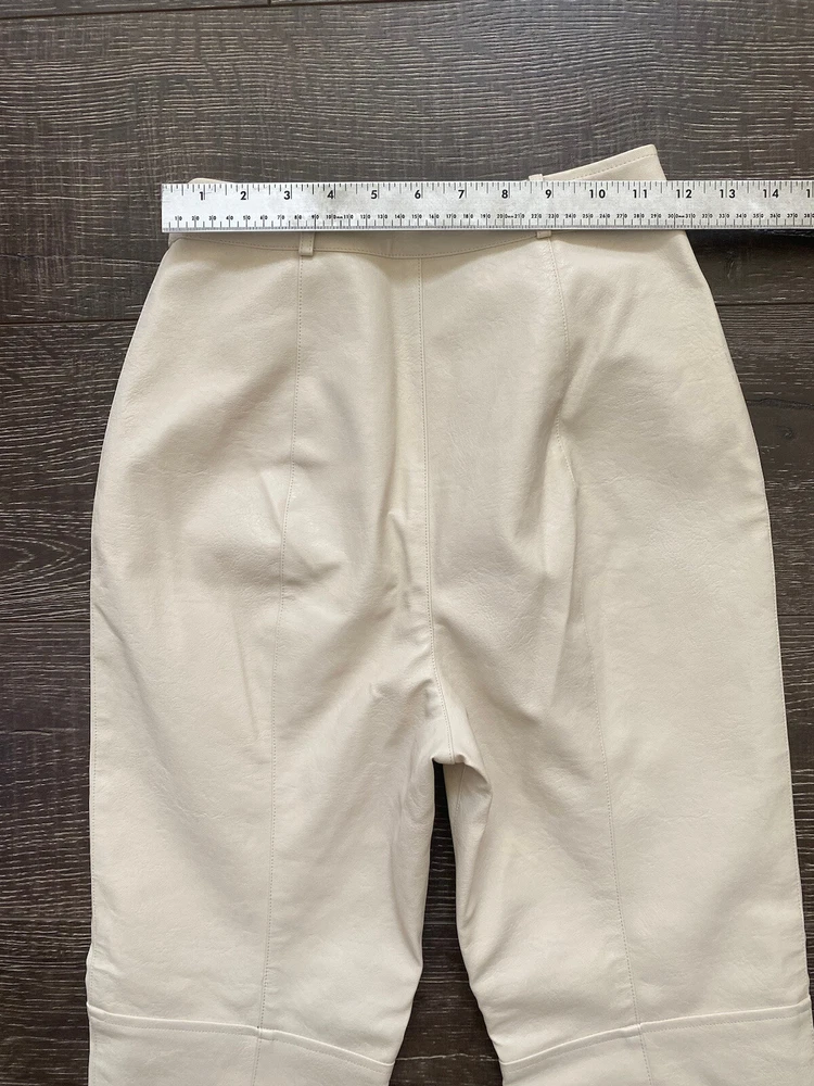 Add some edgy style to your wardrobe with these Beige Faux Leather Pants from Lovers + Friends. These slim-fitting pants are perfect for any occasion, whether you're dressing up for a party or heading to a business meeting. The front features a flat design with a zipper accent, while the back offers a solid pattern that looks amazing from any angle. The pants feature a high-rise waist and a straight leg design that flatters your figure and elongates your legs. They're made from faux leather that looks and feels amazing, and they're easy to care for with a simple hand wash. These pants are perfect for any season, whether you're looking for a stylish addition to your winter, fall, or spring wardrobe. Condition of the item is Pre-Owned in great shape! Shipped asap by USPS First Class Mail.